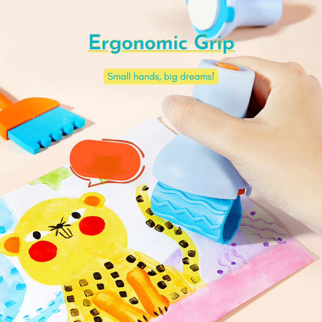 Elevate the joy of finger painting with the Mideer Finger Painting Tool Set. Specifically designed for young artists, this comprehensive kit unlocks endless creative possibilities. The set features a roller brush for smooth and even paint application, along with a variety of stamps and attachments that offer a range of shapes and designs. Each component is crafted with child-safe materials, ensuring a worry-free painting experience. , , With our Finger Painting Tool Set, every painting session becomes a joyous and mess-free adventure, inspiring creativity and artistic exploration.