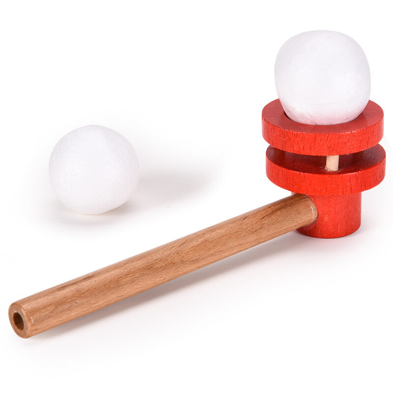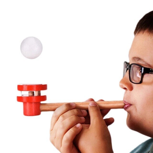 How long can you make this ball float? Challenge your family and friends! A classic game of science demonstrates Bernoulli's Principle, the Law of Pressure Differential. Gently blow into the pipe and watch the ball float, while maintaining a steady rhythm.