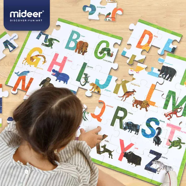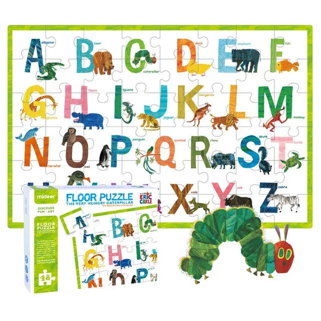 "Illustrated by Eric Carle of the famous The Very Hungry Caterpillar series, your toddler will immediately attach to this beautiful set of beginner puzzles of numbers and color matching. This puzzle includes 48 puzzle pieces, moderate in difficulty, which helps to boost confidence and develop logical thinking.
