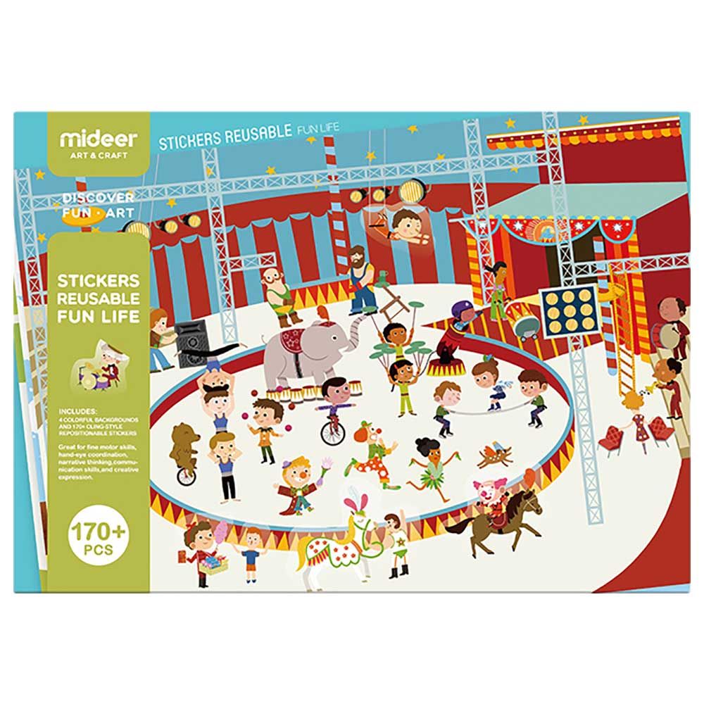 Over 180+ reusable stickers include characters and animals to fill 4 re-usable play scenes. The cling style stickers are easy to place, peel and re-position and the oversized background scenes and sticker pages tear out easily to arrange side by side. Great for Fine Motor Skills, hand-eye coordination, narrative thinking, communication skills and creative expression. ,