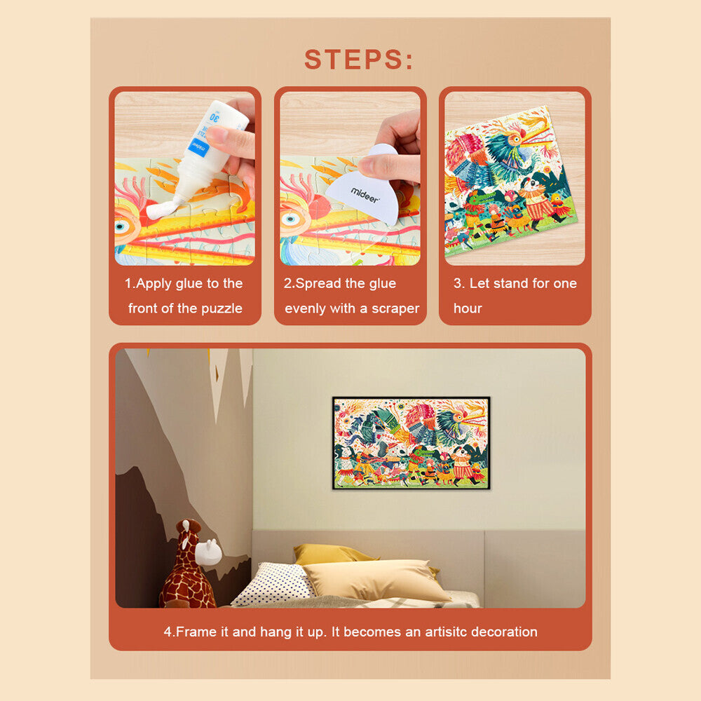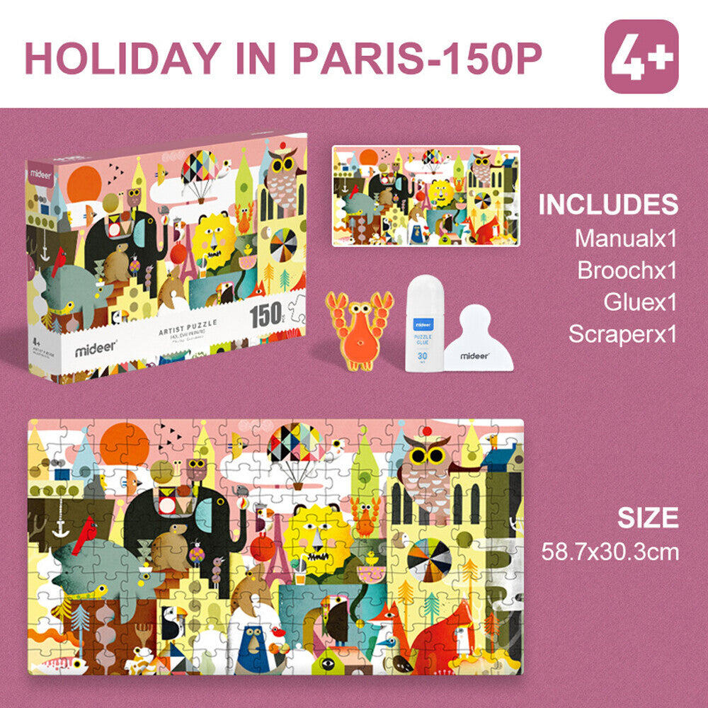 - 150 pieces of interactive puzzle which are easy-to-fit