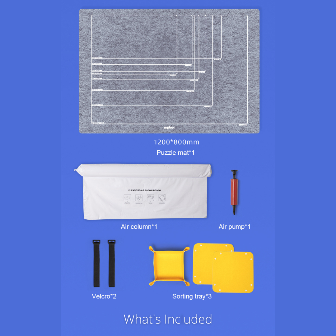 The Mideer Jigsaw Puzzle Mat is Designed to protect your in-progress or finished puzzle and let you move the puzzle without causing it to break apart. It is optimized for easy use and convenience with 3 steps: Firstly inflate the tube, then roll up the puzzle mat and tie up the included bands. That's it! Pretty easy right?! The grey color contributes to the sharp contrast between the mat and the colorful puzzles. This can improve efficiency and make it easier, especially for kids and the elderly.