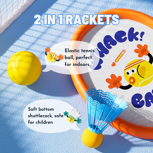 This versatile racket set provides children with a fun and educational way to engage in physical activity, develop motor skills, and enjoy playing sports both independently and with others.