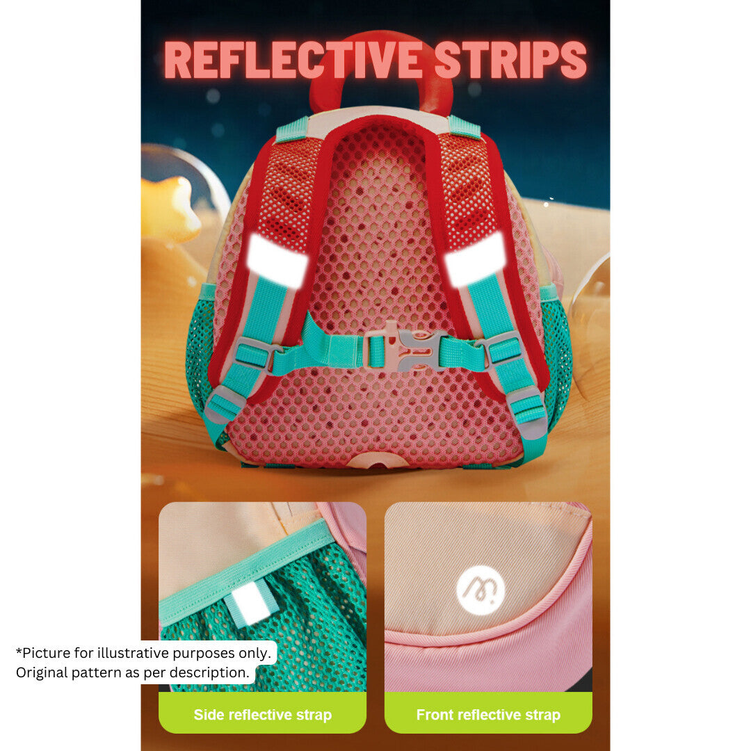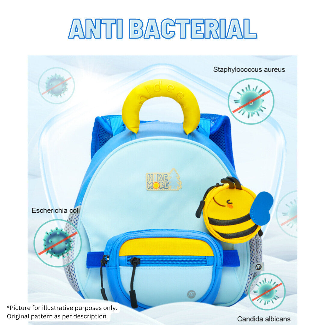 The pouches can be removed or added as needed, providing extra storage space for snacks, water bottles, or other essentials. This makes the backpack versatile and practical for a variety of activities. The backpack features built-in reflective strips that increase visibility and safety in low-light conditions. It also includes a built-in whistle that children can use in case of emergency. The backpack's anti-bacterial design helps to prevent the growth of bacteria and other microorganisms, keeping children healthy and safe.