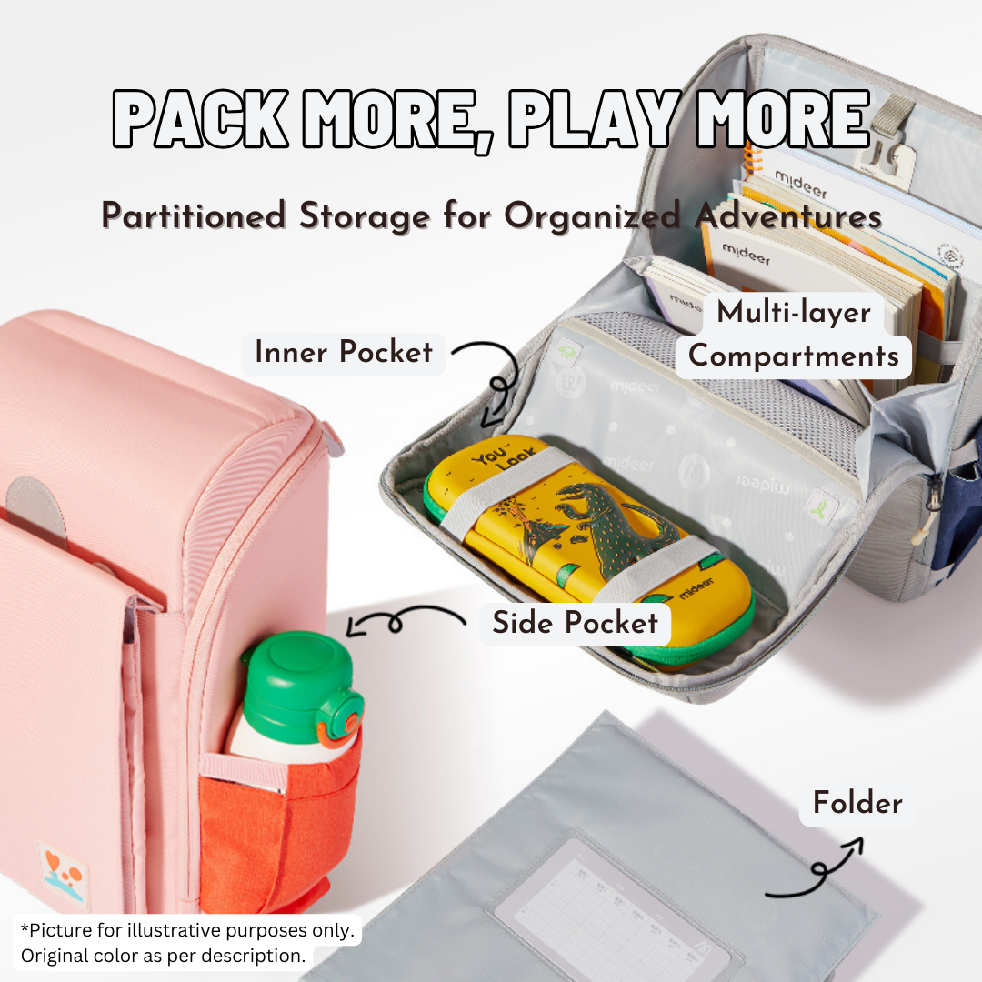 Discover the "Mideer Ergo Backpack," a versatile and ergonomic bag designed to lighten the load on young shoulders. This innovative backpack doubles as a crossbody bag, featuring waterproof material and multiple compartments for organized storage, ideal for children's daily activities.