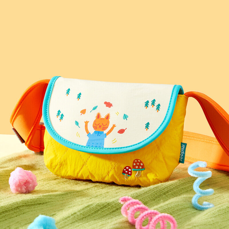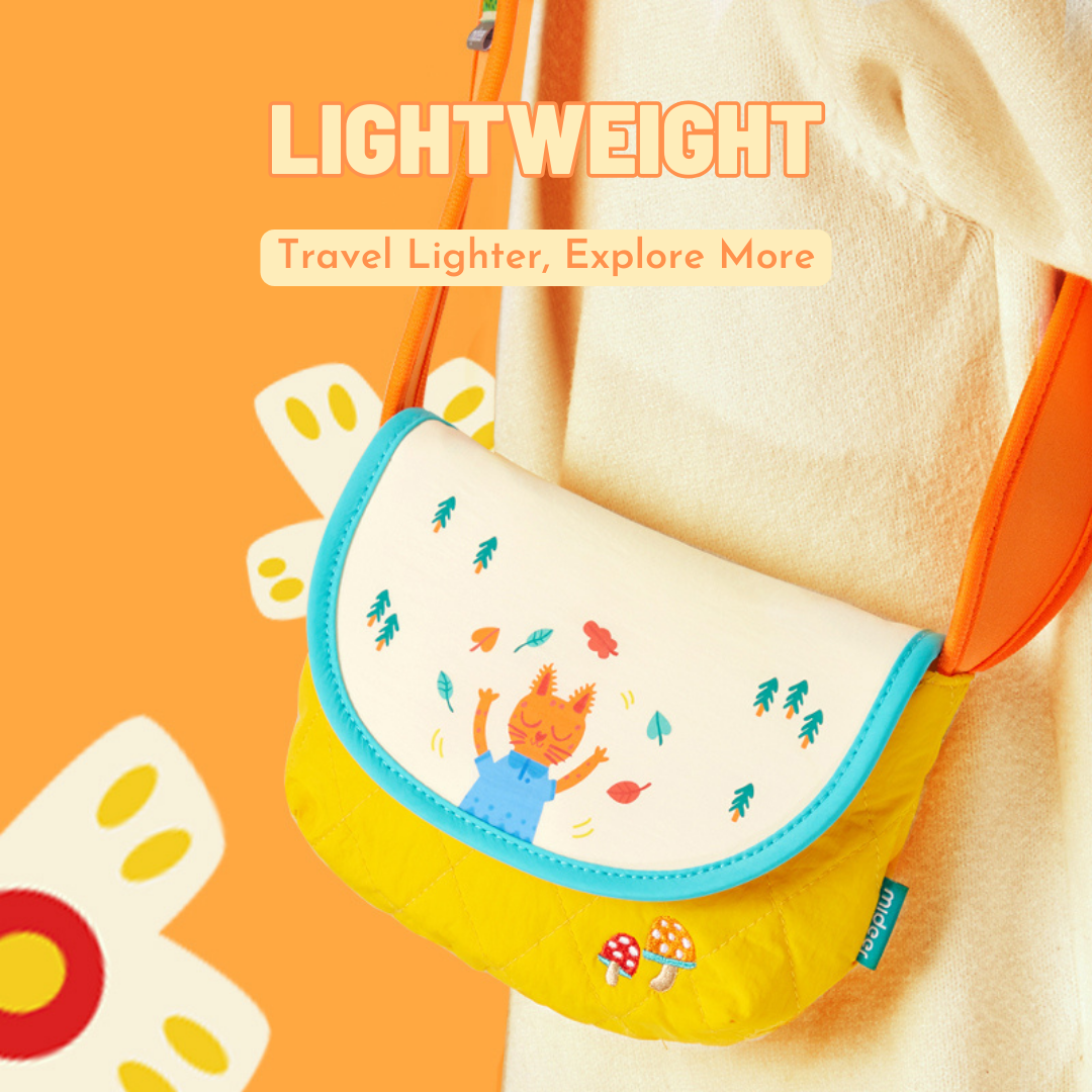 Introducing the "Mideer Kids' Crossbody Bag: Meditative Kitty," a lightweight and spacious companion designed for your child's daily adventures. Featuring a waterproof surface for protection and an adjustable strap for comfort, this charming bag combines functionality with a serene kitty design.