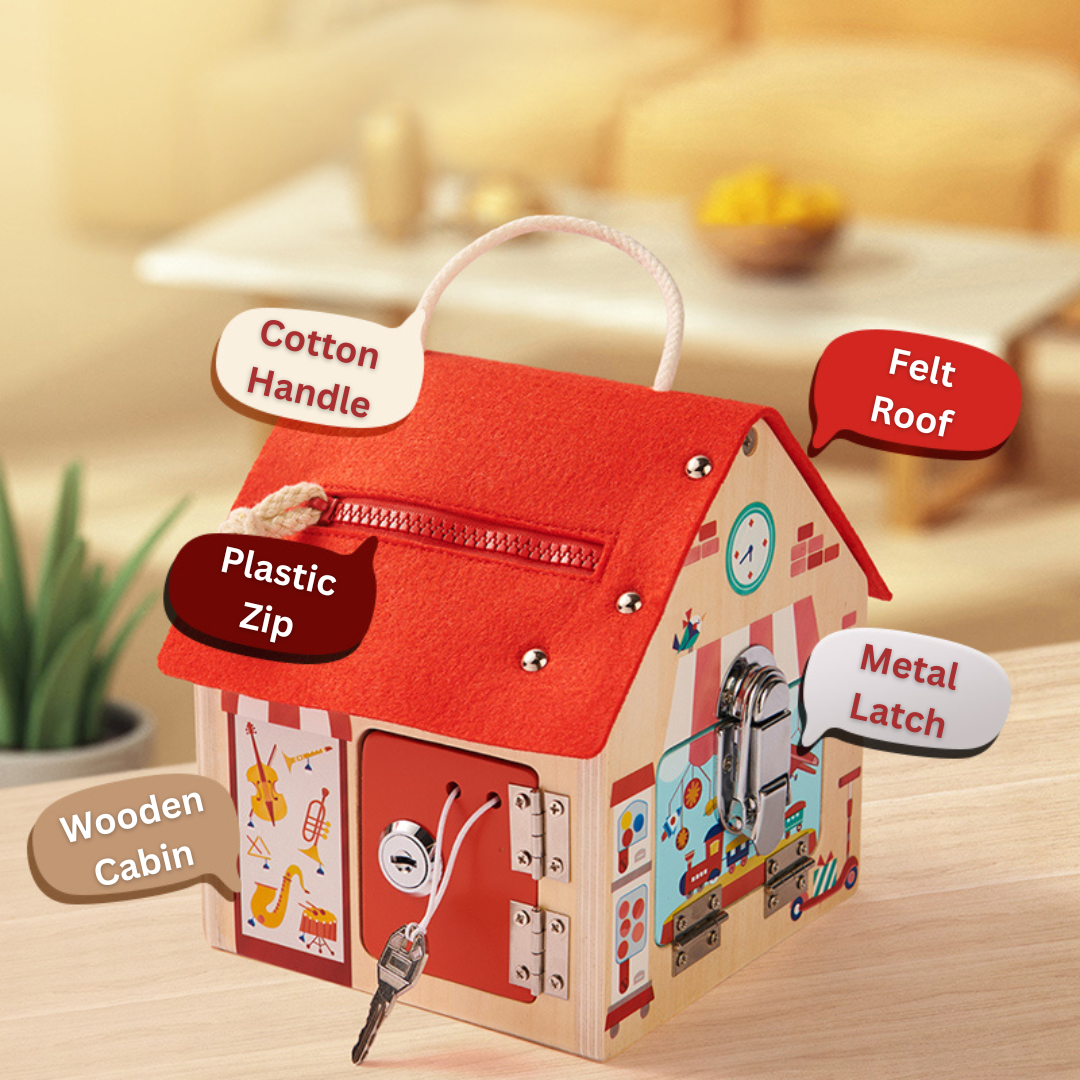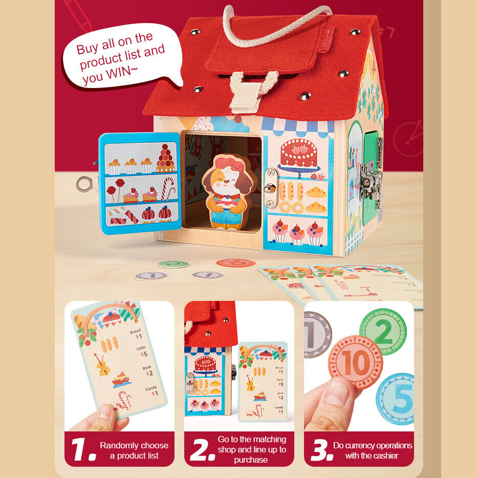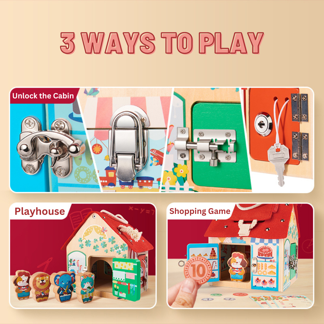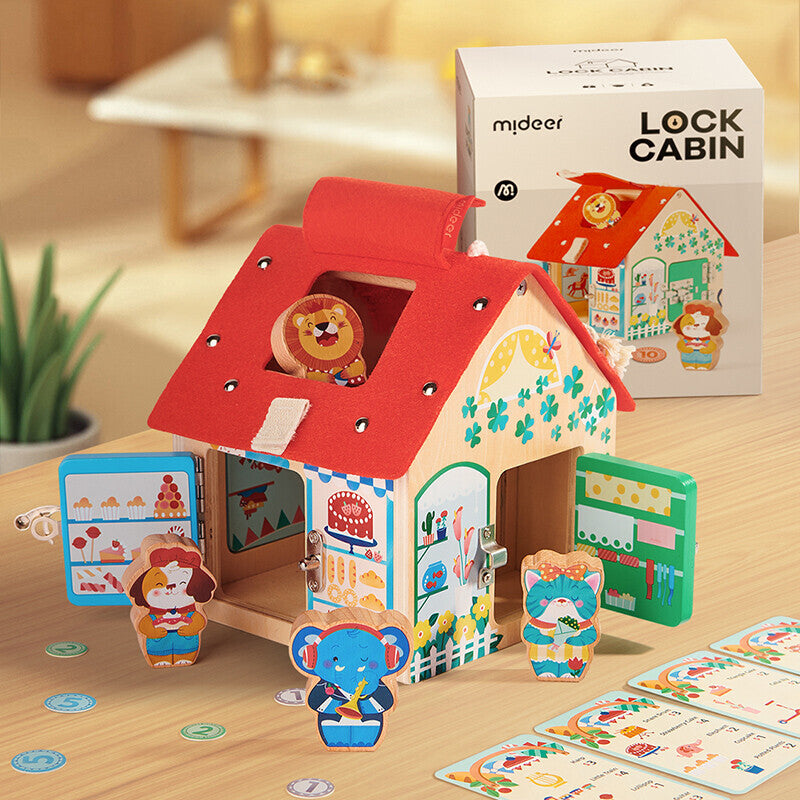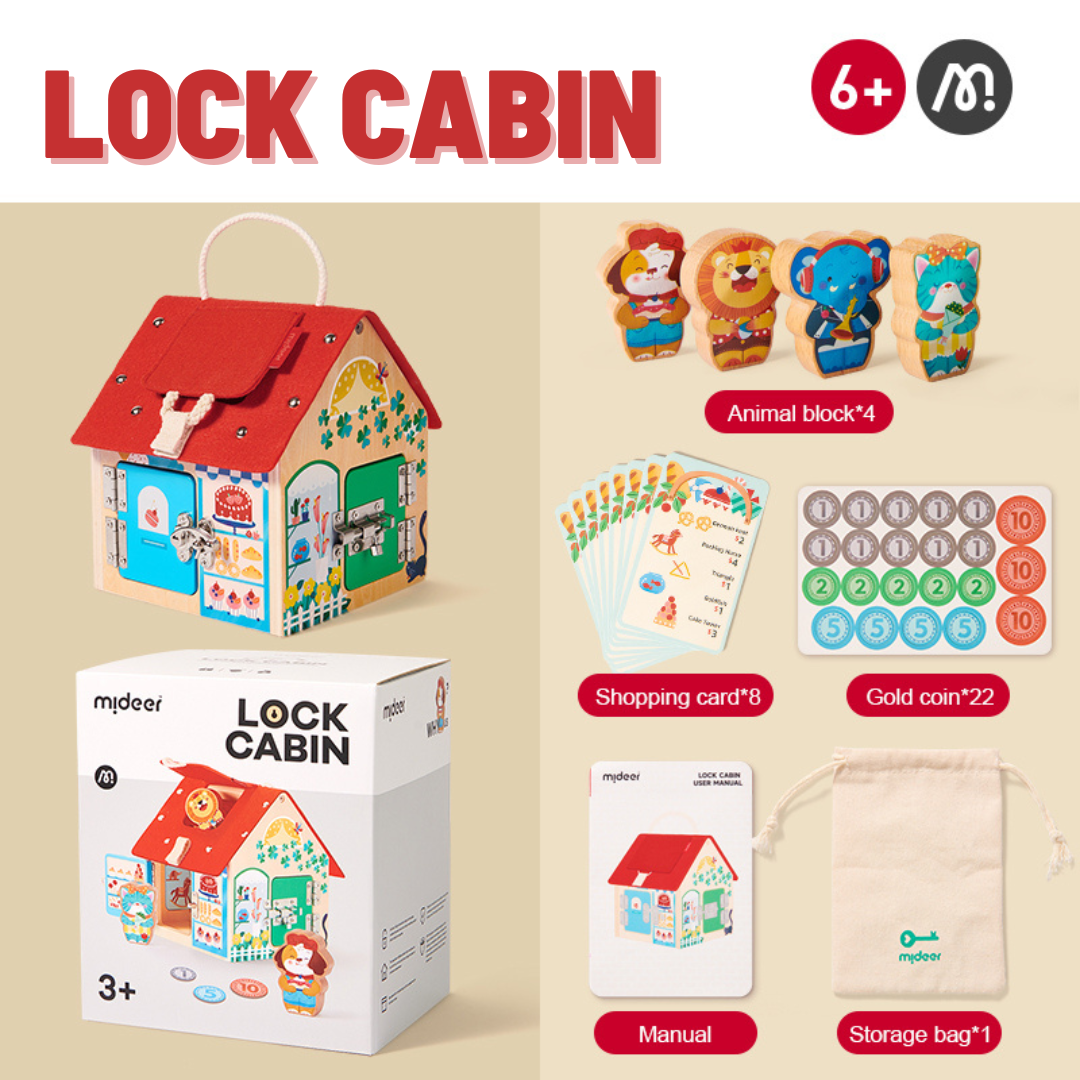 The Lock Cabin from Mideer is a fun learning experience for kids. The Cabin offers 3 different ways to play. It can be used as a simple playhouse, an unlock cabin with a variety of different locks to keep it interesting as well and a shopping game. It allows children to do a mock shopping experience before they embark on the real world of shopping. It also teaches children simple mathematics by using tokens in replacement of real money, giving them the first idea of the money concept.
