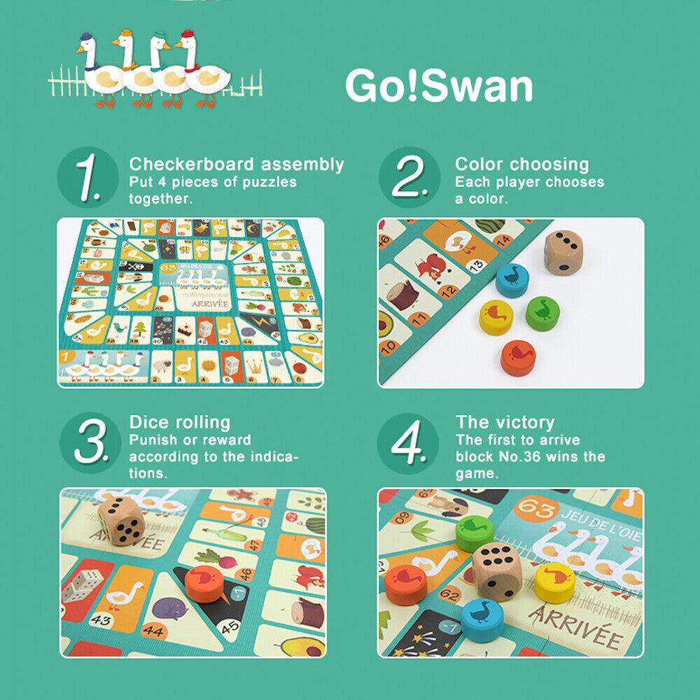 - There are two games, Swan Chess and Flying Chess.