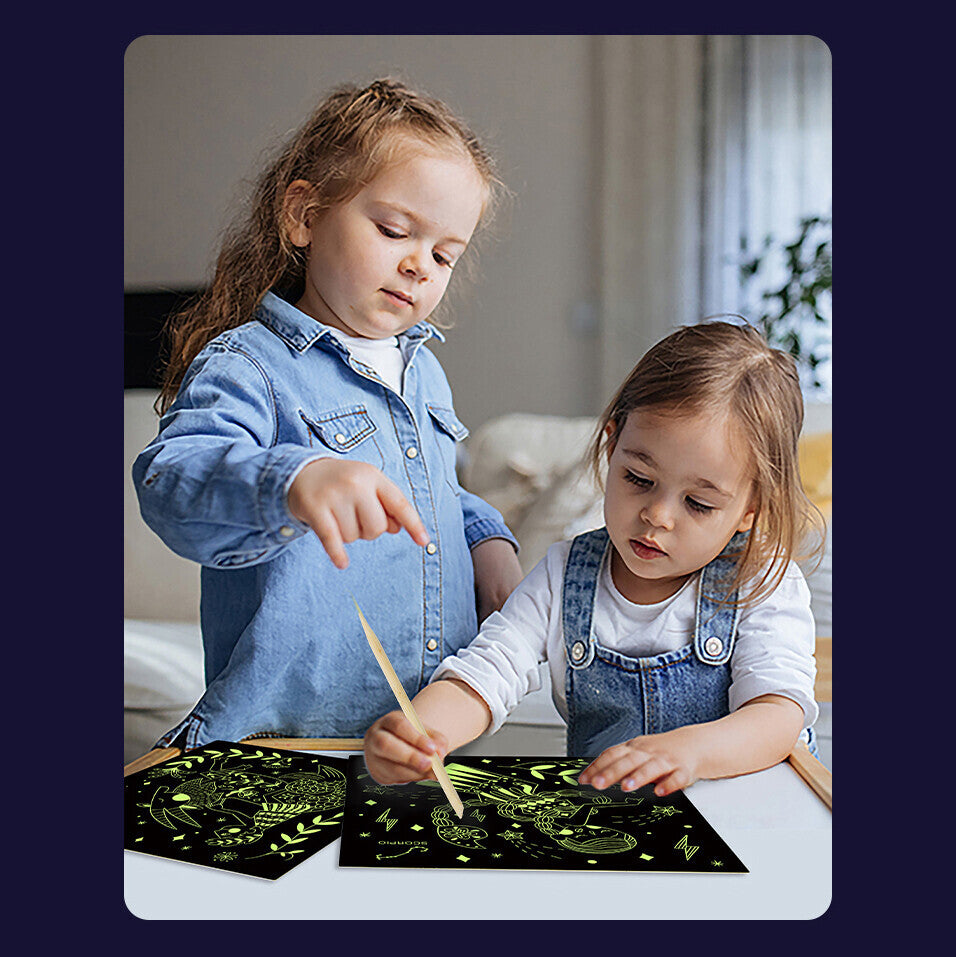 Try a different painting experience without the use of paints and brushes. Just scrape the black layer of each card and let the beautiful and colorful patterns gradually appear. The Mideer Scratch Art Kit is a great set to develop creative thinking, aesthetic appreciation, and fine motor skills. Unleash the artist in your child with our Scratch Art Cards.