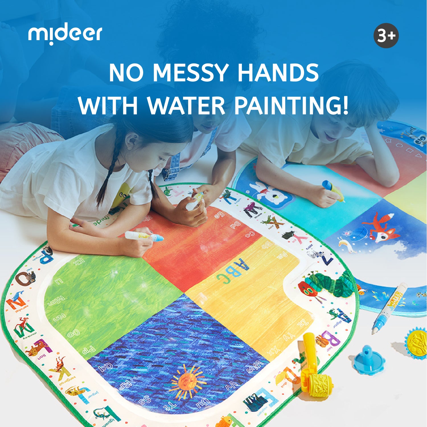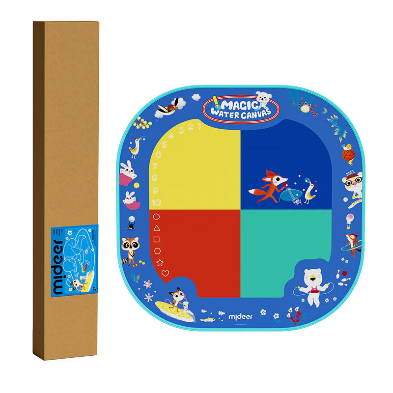 The Mideer Magic Doodle Mat transforms water into endless creative possibilities! This reusable drawing mat allows children to express their artistic side without the need for paint, providing a safe and mess-free experience. Made from high-quality, odor-free canvas, it dries quickly after each use, allowing for continuous play. The large 80x80cm surface gives kids ample room to create, while the included tools such as a brush, stamps, and rollers enhance their artistic exploration.
