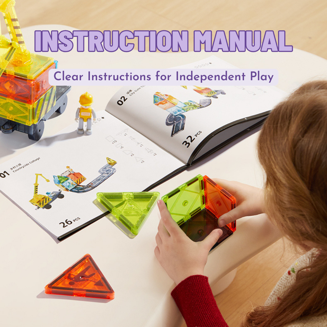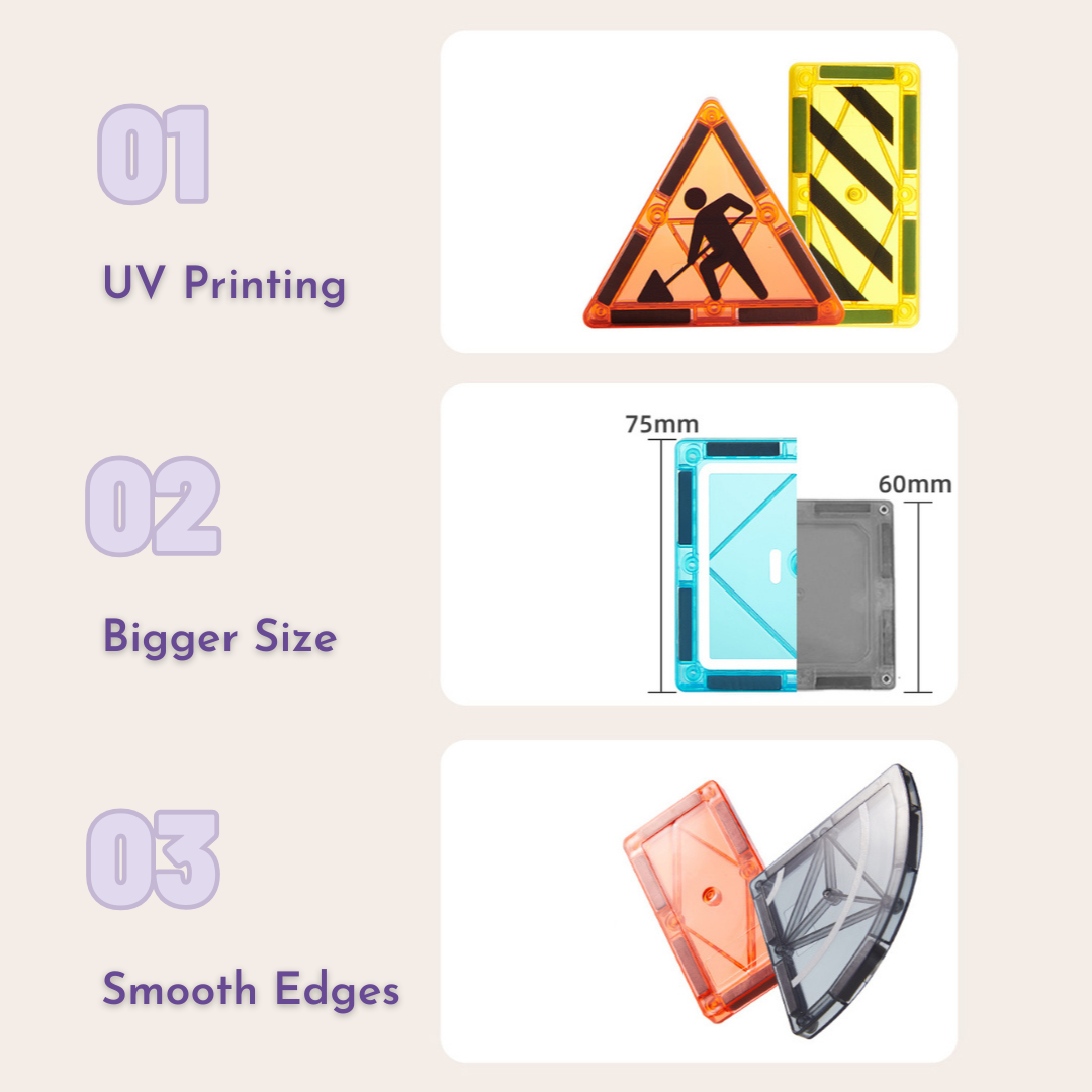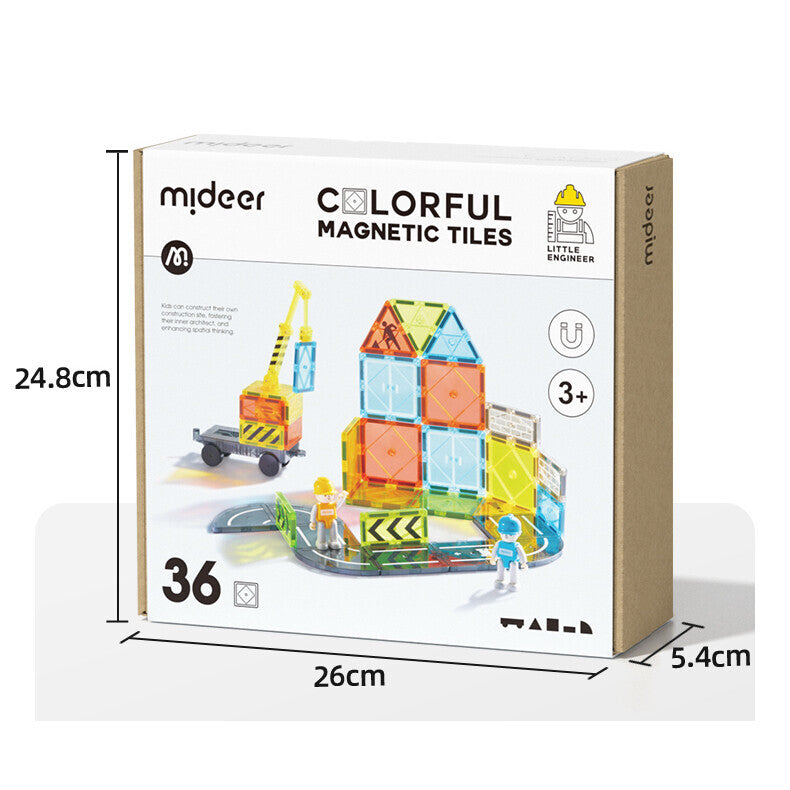 Mideer Magnetic Tiles are a set of educational and fun building blocks designed to inspire creativity and imagination in children. With strong magnets embedded in each tile, these tiles can be easily attached and detached, allowing children to build and create a variety of structures and designs. The tiles have rounded edges, making them safe and comfortable for children to hold and play with. , , They also have a translucent colour, adding to the visual appeal of the tiles and enabling children to see their creations in a different light. Each tile is larger than the average building block. This larger size provides children with more surface area to work with, allowing them to build larger and more intricate designs. The tiles are also incredibly durable, with high impact resistance, meaning they can withstand the rough and tumble play of children without breaking or chipping.