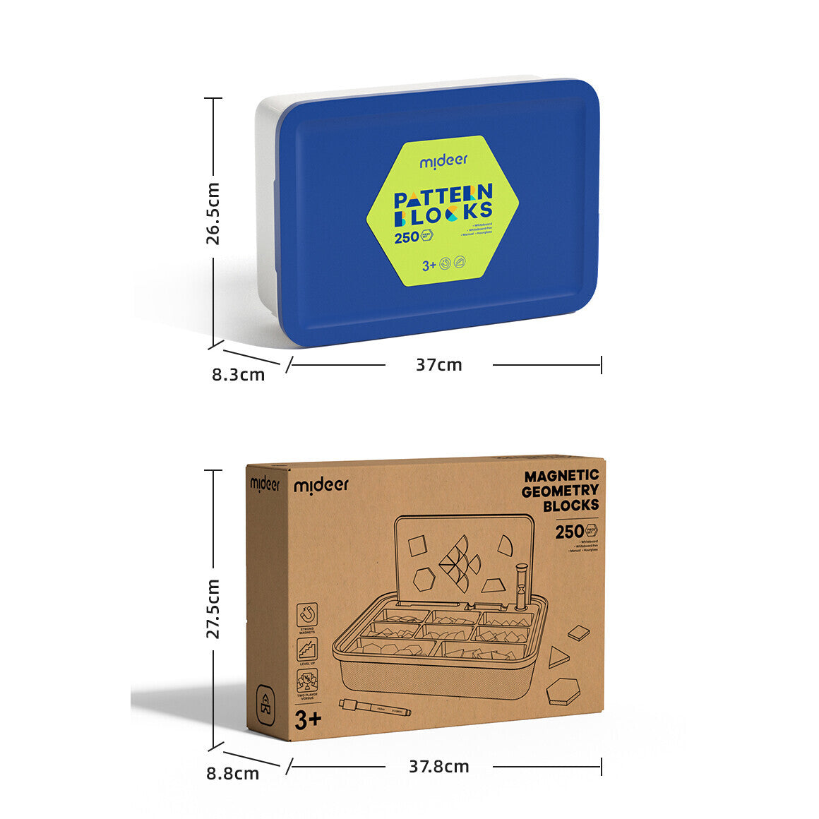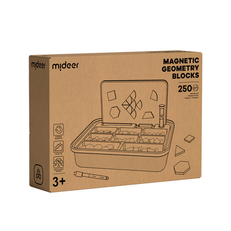 Mideer Magnetic Wooden Geometry Blocks is a comprehensive educational set that provides endless hours of fun and learning for kids. This set comes with 250 wooden blocks in different shapes, sizes, and colors, designed to help children develop their geometry skills.One of the best things about Mideer Magnetic Wooden Geometry Blocks is the inclusion of a whiteboard and a marker, which allows kids to sketch and draw their designs before building them with the blocks. The set also includes an instruction guide that helps children get started and gives them ideas for building different structures. The sand timer is another great addition to the set, which encourages kids to work within a given timeframe, improving their focus and concentration skills.
