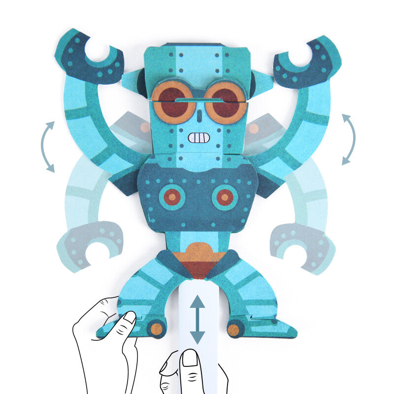 Develop your child's hands-on ability through Mideer's Make and Move Origami. These are paper-craft moving toys that are fun to put together and play with. All 8 of the models are ready to make. No need to use any knives or scissors. Simply push out the pieces, and you won't need any glue or tape to assemble them. Follow the illustrated instructions to create fantastic movable characters. Includes a fantastic step-by-step book guide.