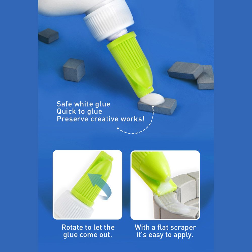 - Safe water-soluble white glue with a flat scraper for ease of use.