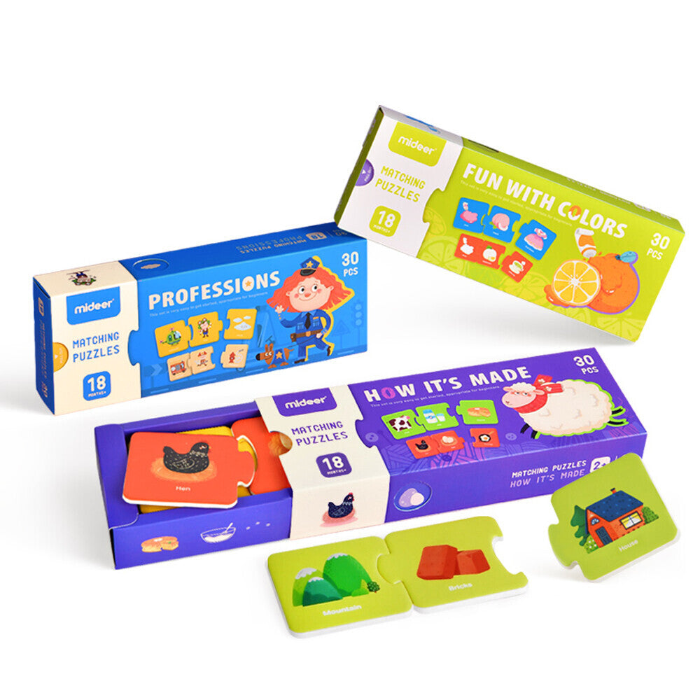 The Matching Puzzles Series is designed to provide just the right level of challenge for your child; begin by offering just two matching pieces; increase the challenge level by simply offering more pieces to choose from. These puzzles are a great way to help your child develop basic problem-solving skills such as creative thinking and perseverance. The puzzles are self-correcting which means that only one piece will fit with any other, thus eliminating the frustration. Completing each mini-puzzle correctly and being rewarded with a fun image related to the exciting theme is a big boost to a child’s confidence.