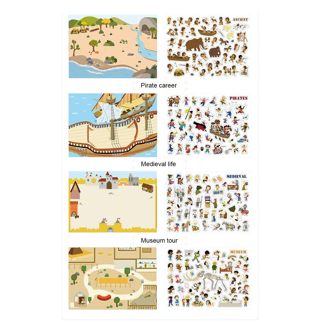 Over 180 reusable stickers to fill 4 reusable play scenes.The cling-style stickers are easy to place, peel and re-position.Great for your little one's motor skills, hand-eye coordination, narrative thinking, and creative expression.