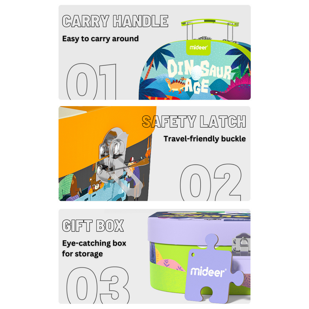 The puzzle comes in a premium carry box, so kids can keep all the pieces organized and protected. The box is also convenient for storing the puzzle when it's not in use, or for taking it with you when you're on the go. The puzzle has a fun and colorful design, so it's sure to capture kids' attention and keep them engaged. Overall, this is a fantastic choice for families who want to provide their kids with a fun and educational activity that helps develop problem-solving and fine motor skills.
