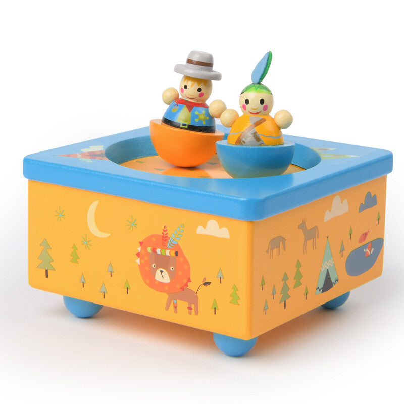 The beautiful illustrations around the music box reflect the ancient and unique culture of the Indian people. As the song of the melodic king called "swan lake" plays, an Indian girl and cowboy boy dance. The Indian girl's headdress is decorated with delicate non-woven fabric, and the eagle crest is a feature of Indian clothing, a symbol of bravery and honor.