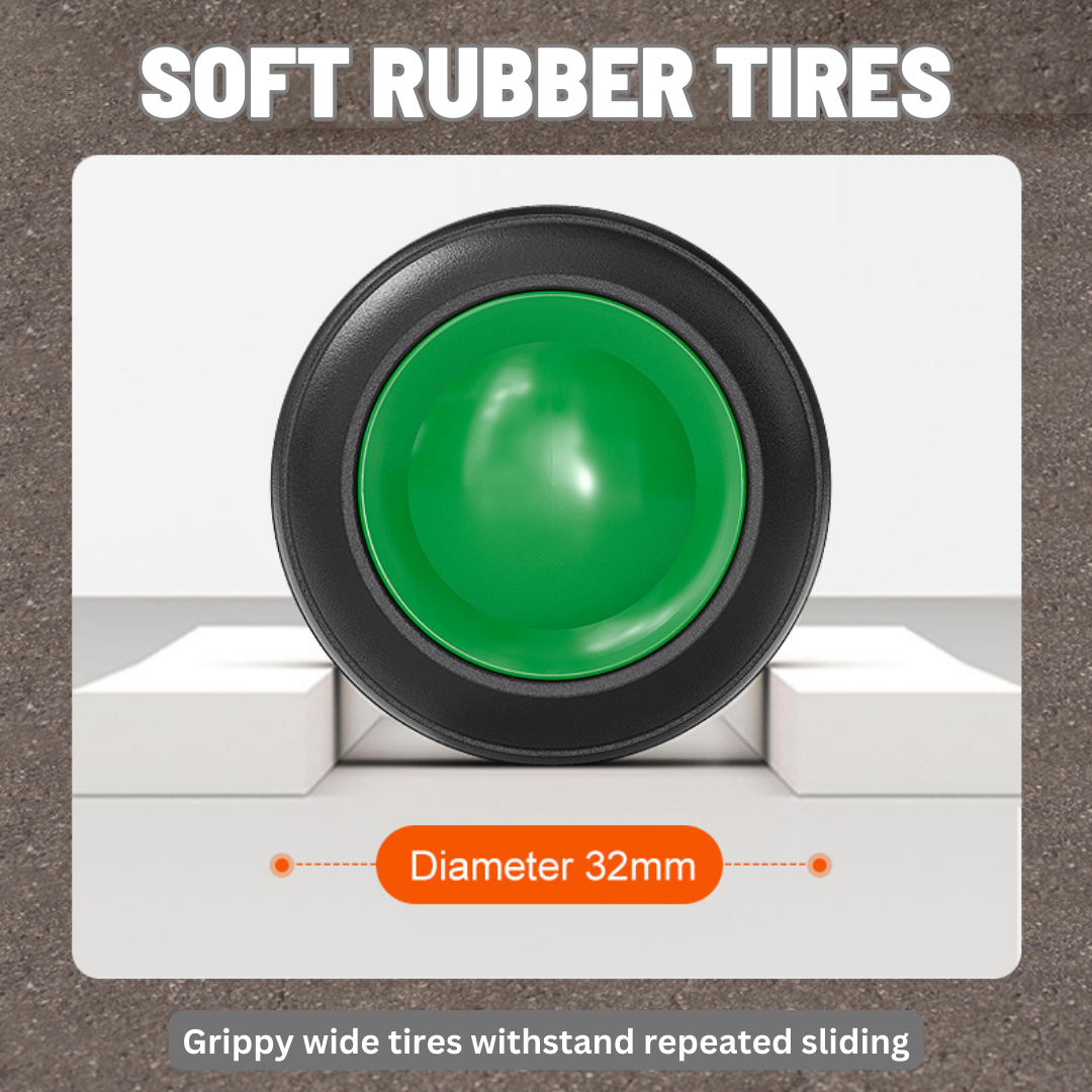 - Soft rubber tires measuring 32mm in diameter provide excellent traction and a smooth ride.