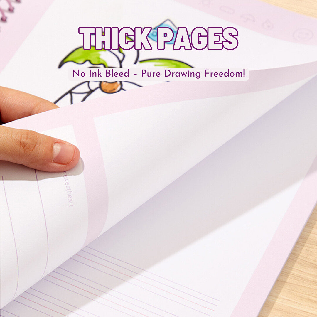 Designed with durability in mind, the water-resistant cover protects the precious creations within. The coil binding allows for easy flipping of pages and lays flat for a comfortable and convenient drawing or writing experience. Rounded corners add a touch of safety and elegance, making it an ideal companion for young minds exploring their creativity.