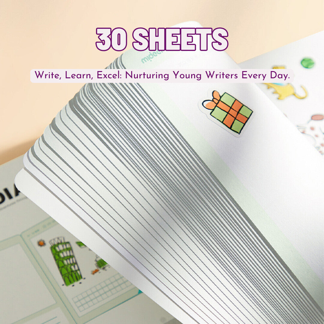 Introducing the Mideer - My First Journal, a creative haven for budding artists and writers alike. This beautifully designed journal is crafted with care, featuring 30 thick sheets that promise a pristine canvas for your little one's imagination. The high-quality paper ensures a smooth writing and drawing experience without the worry of ink bleed-through, providing a perfect space to bring thoughts and ideas to life.