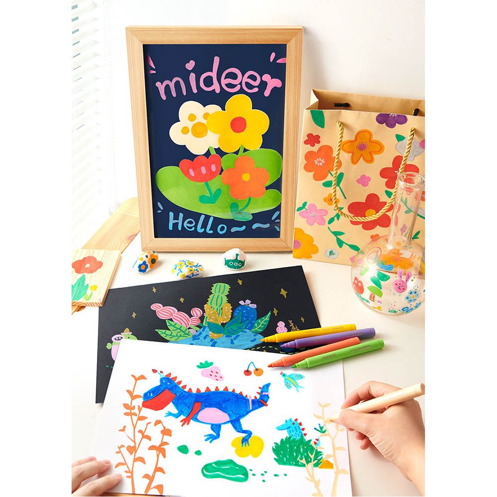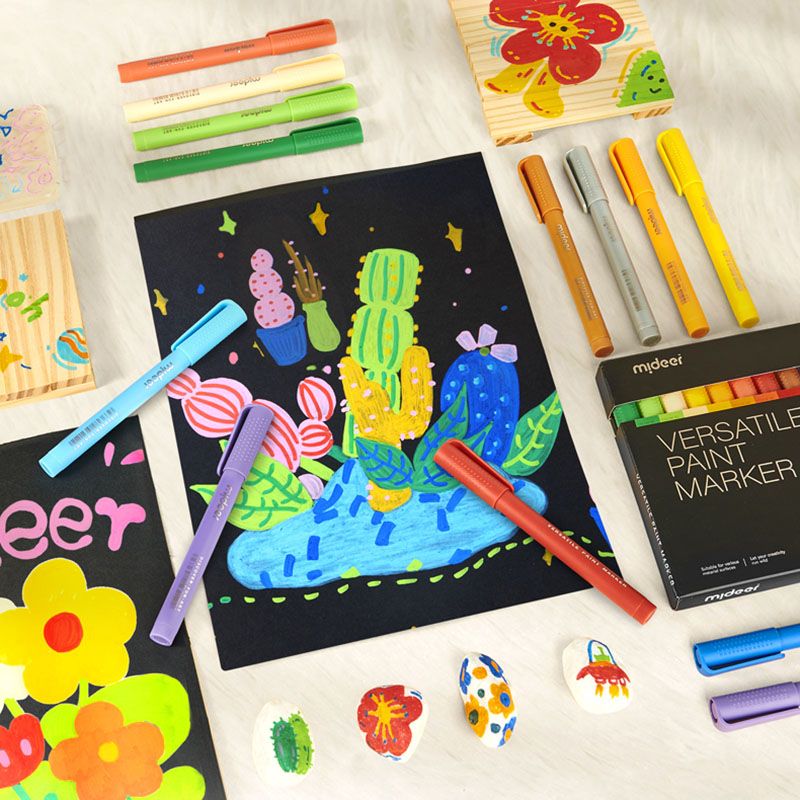 Mideer Paint Marker inspires your kids to do more and let their imagination go free. With these markers, there are truly no limitations as they can be used on multiple surfaces such as wood, glass, cloth, etc. The washable ink can easily be cleaned from most surfaces so you can stay worry-free and let your little artist go wild with their drawings. The smooth and consistent ink creates masterpieces and makes the markers fun to use. These easy-to-hold Markers from Mideer are perfect for little hands and are great for encouraging creativity and imagination.