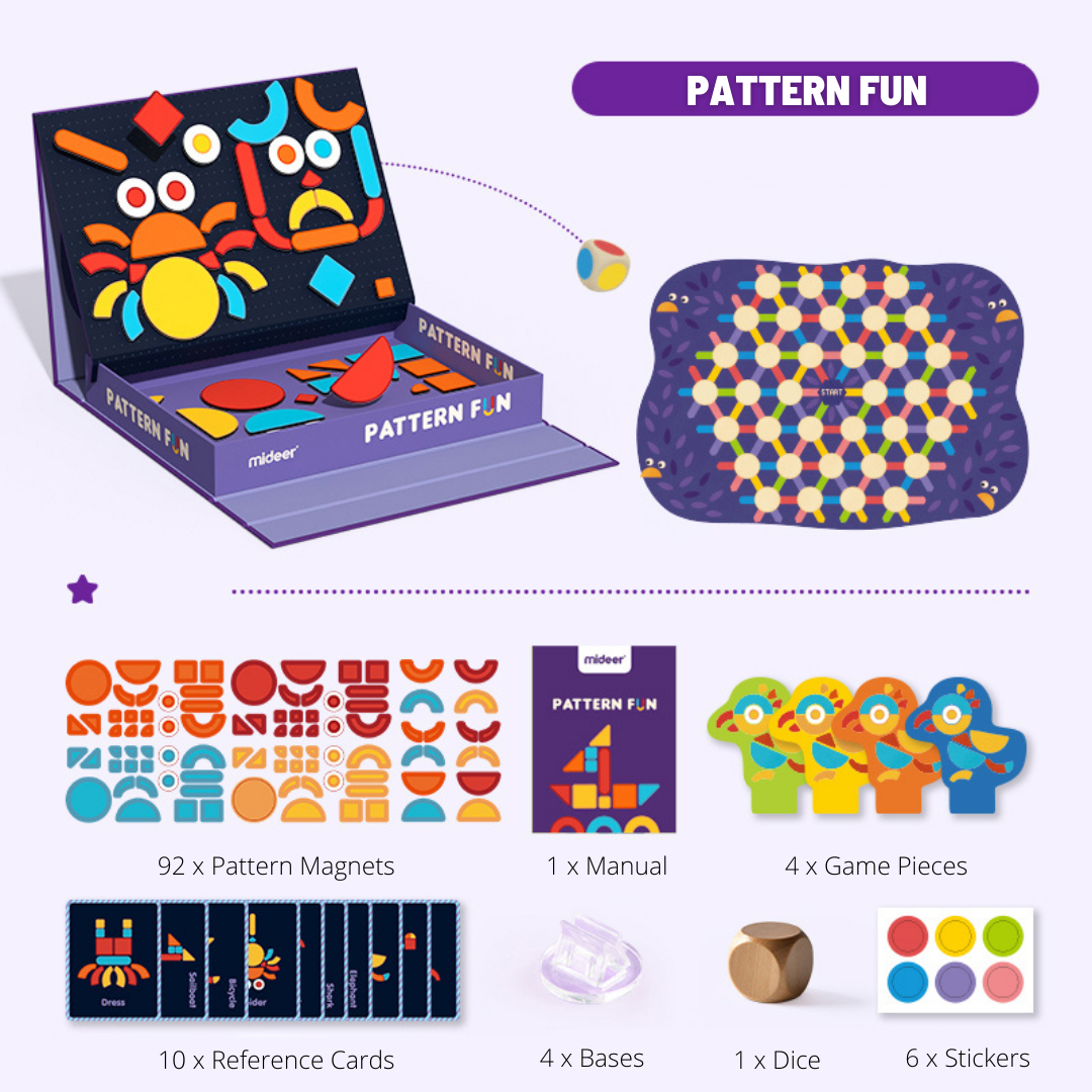 This activity is perfect for home or on-the-go play! This set features 8 different vehicle game cards and 92 magnetic pieces. Place the game cards for kids to create various patterns. The game encourages creative play and helps develop problem-solving, matching, and fine motor skills.