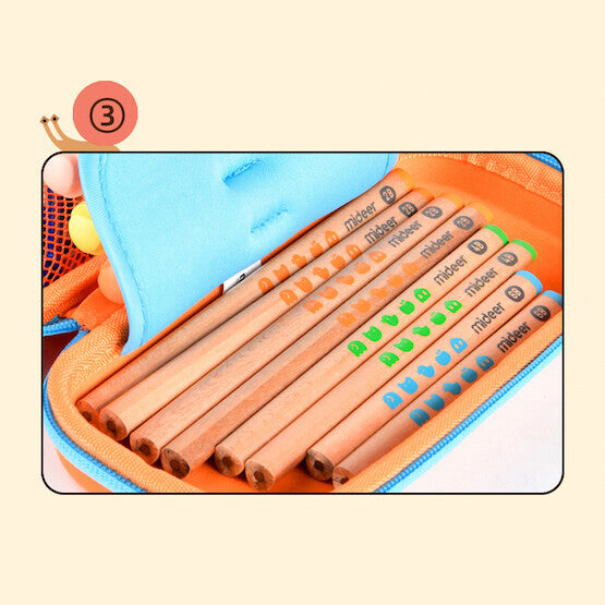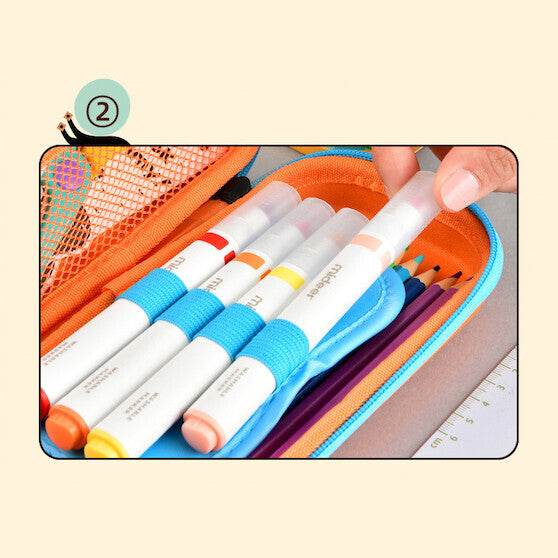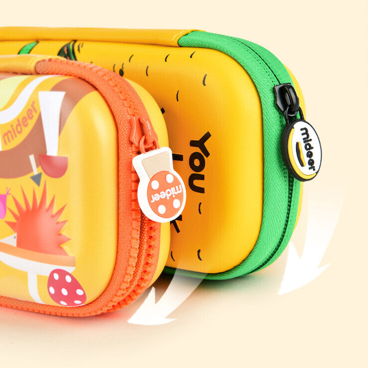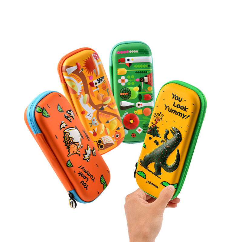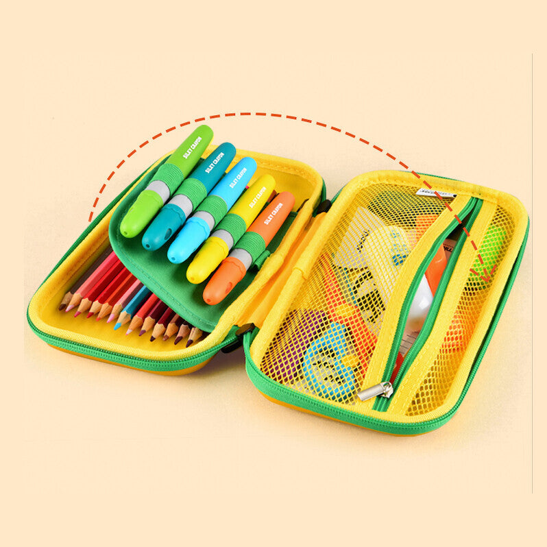 This case is made of waterproof high-density EVA material which makes it easy to keep clean. Dual compartment design makes it easier to get organized. The left side is great for bigger objects such as erasers or a ruler, while the right one is for pens and pencils. The wide opening makes it easy for kids to access their stationery.