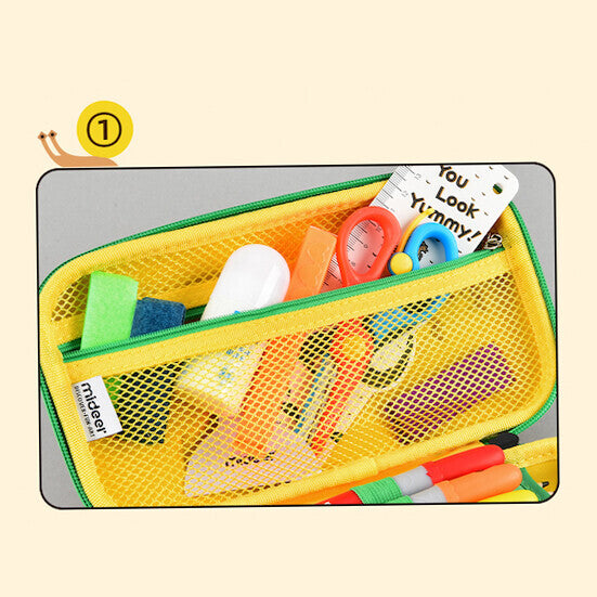 This case is made of waterproof high-density EVA material which makes it easy to keep clean. Dual compartment design makes it easier to get organized. The left side is great for bigger objects such as erasers or a ruler, while the right one is for pens and pencils. The wide opening makes it easy for kids to access their stationery.