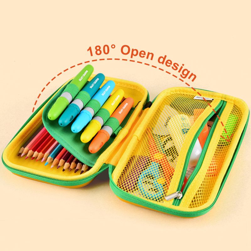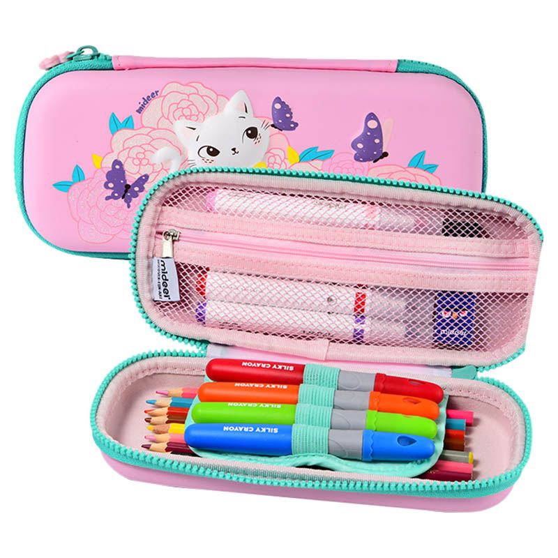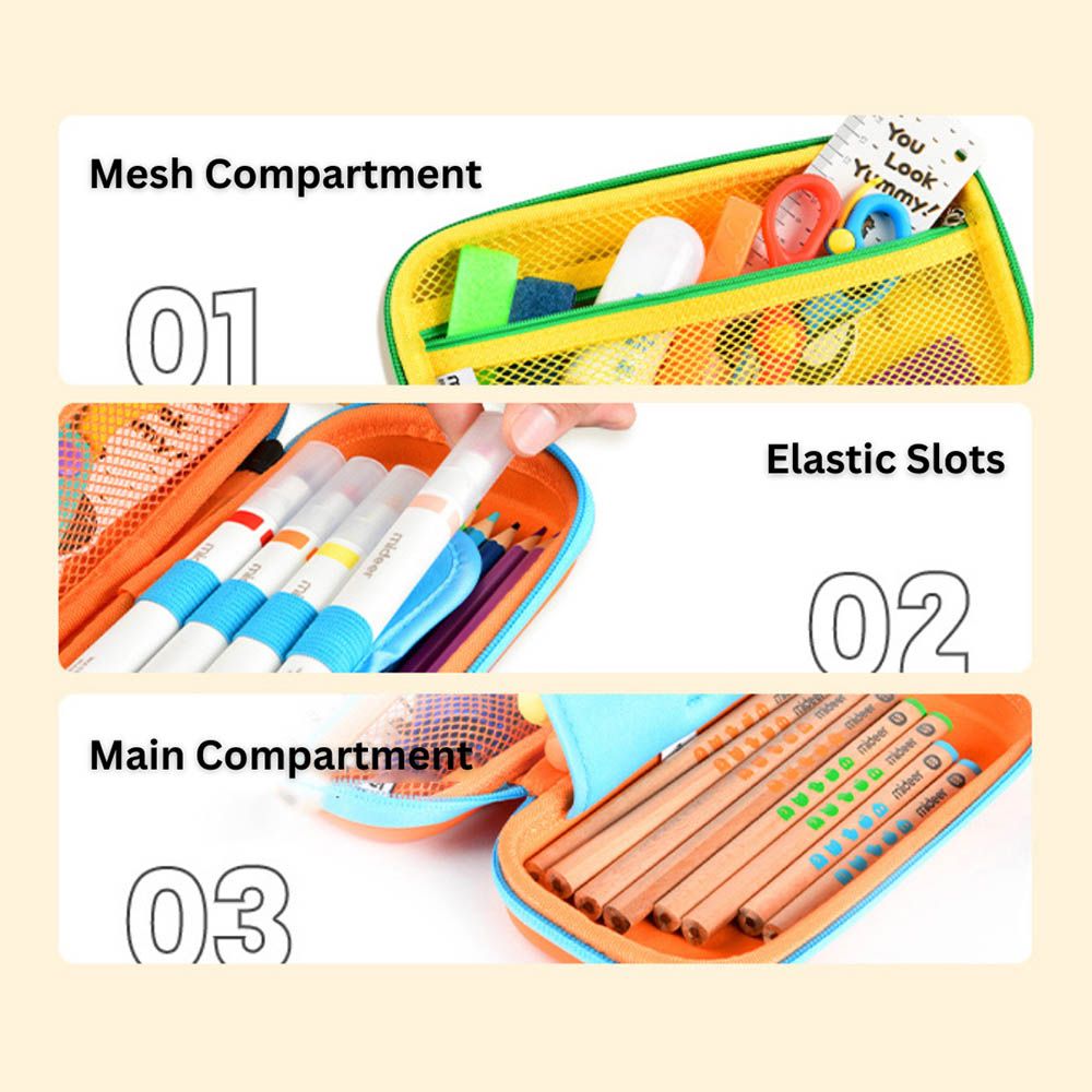 Keep your child's pencils and pens organized with the Mideer Pencil Case. The waterproof construction of this case helps in easy upkeep. It features a dual compartment design to organize the items easily. The left side compartment accommodates bigger objects like erasers or a ruler, while the right is for pens and pencils. It has a wide opening to allow easy access to the stationery inside the case.