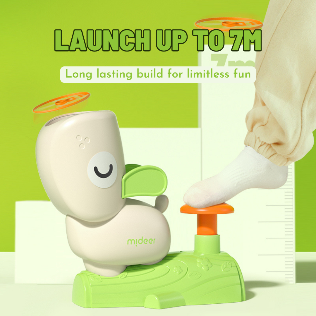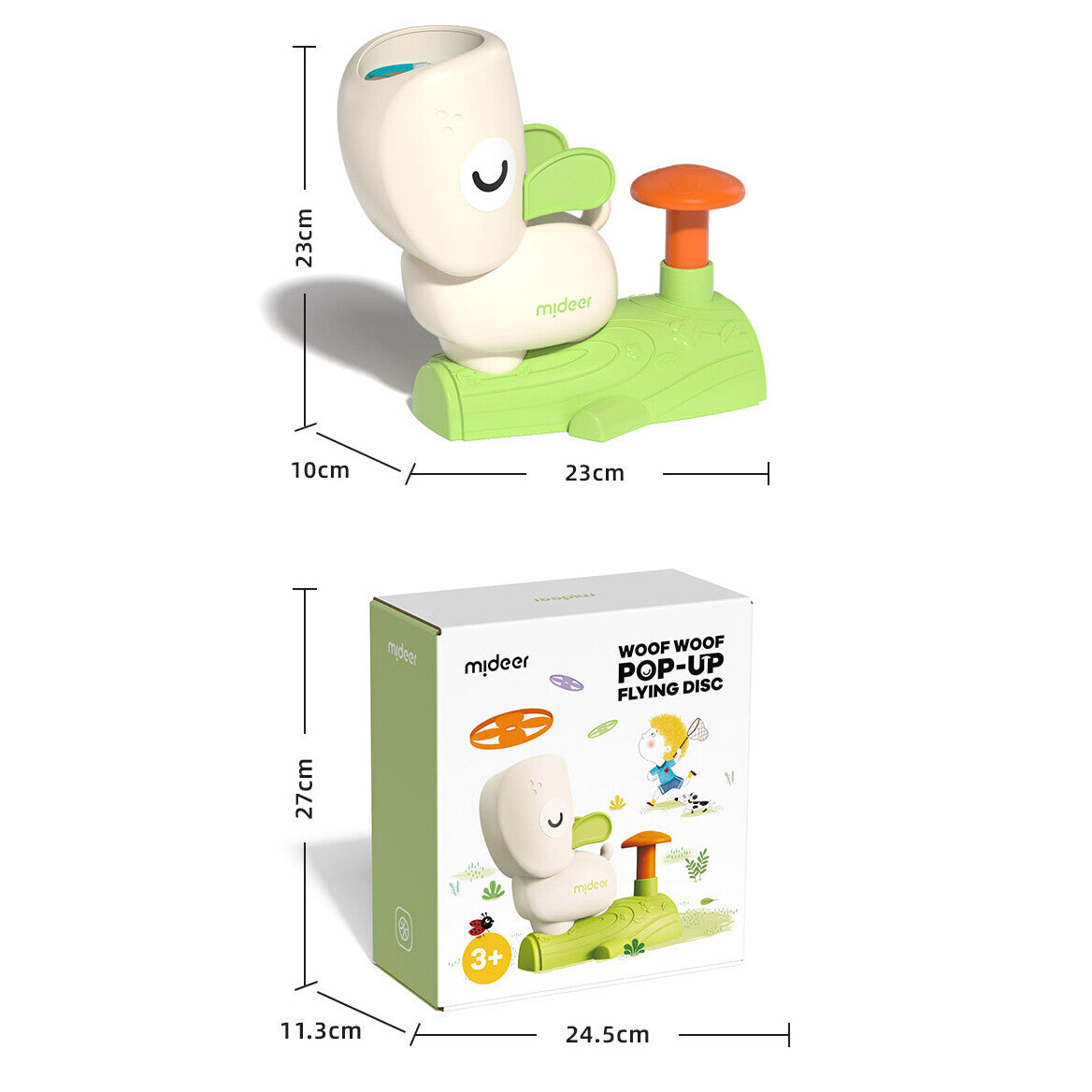 Introducing the Mideer Pop-Up Flying Disc with a fun and playful dog theme! This unique and interactive toy brings endless hours of excitement for kids and adults alike. With its innovative design, the Mideer Pop-Up Flying Disc is easy to use - simply step on the pedal to launch the disc into the air and then catch it with the included net. Playing with the Mideer Pop-Up Flying Disc is an exhilarating experience that can be enjoyed alone or with friends. Challenge each other to see who can catch the disc the most times or who can launch it the farthest. , , With a launch range of up to 7 meters, this toy provides plenty of thrills and excitement for outdoor playtime. Safety is a top priority with the Mideer Pop-Up Flying Disc.