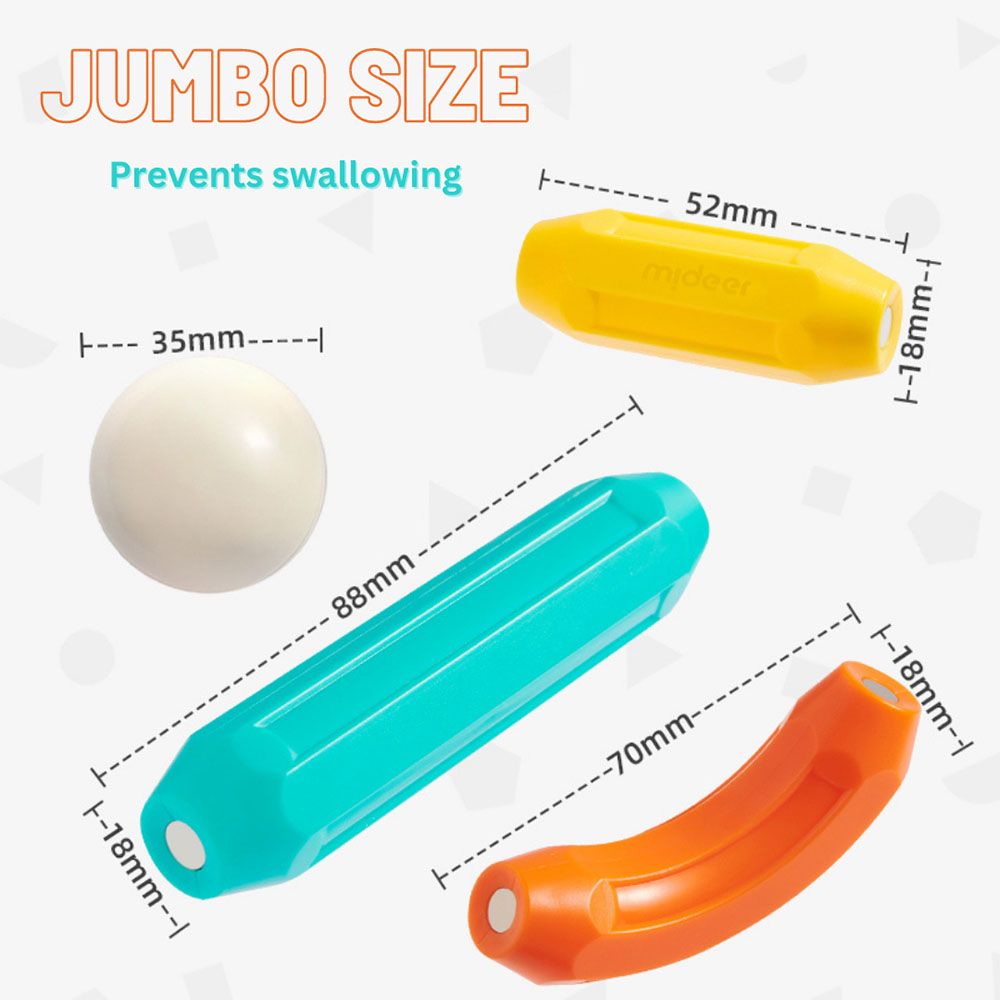 The Jumbo size of these magnetic sticks makes them much harder for kids to swallow, This added safety feature provides parents with extra peace of mind knowing that their child can play safely with these building sticks.