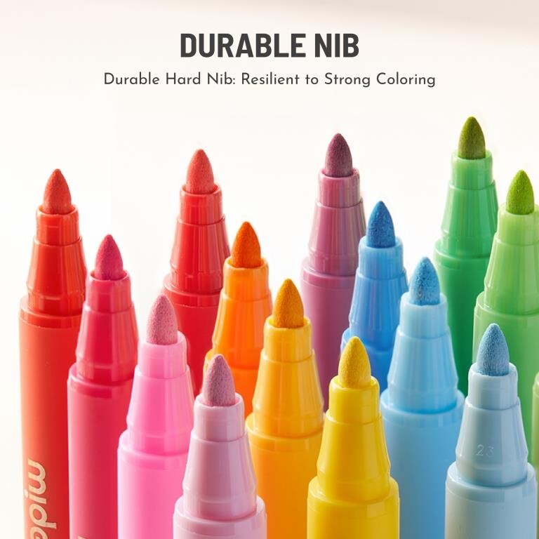 Whether you're a seasoned artist or a budding enthusiast, Mideer Round Nib Acrylic Markers are the perfect companion for unleashing your artistic vision on any surface, bringing your imagination to life with vibrant colors, reliable performance, and endless possibilities.