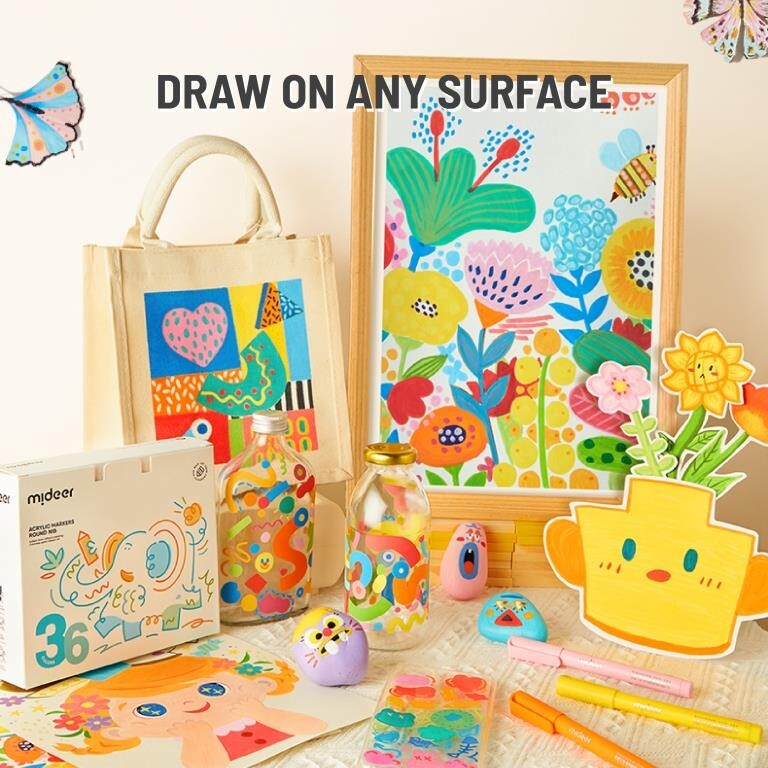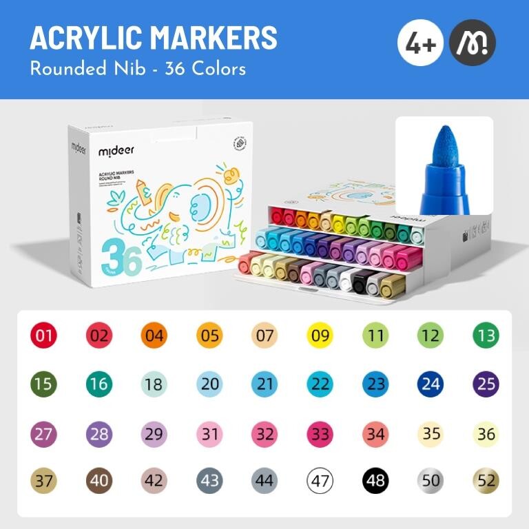 Whether you're a seasoned artist or a budding enthusiast, Mideer Round Nib Acrylic Markers are the perfect companion for unleashing your artistic vision on any surface, bringing your imagination to life with vibrant colors, reliable performance, and endless possibilities.