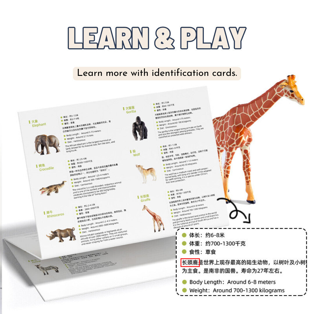- Educational ID Cards: Enhancing the educational value, each safari animal is accompanied by an ID card containing interesting facts and information, making it a valuable tool for learning about the diverse species found in the animal kingdom.