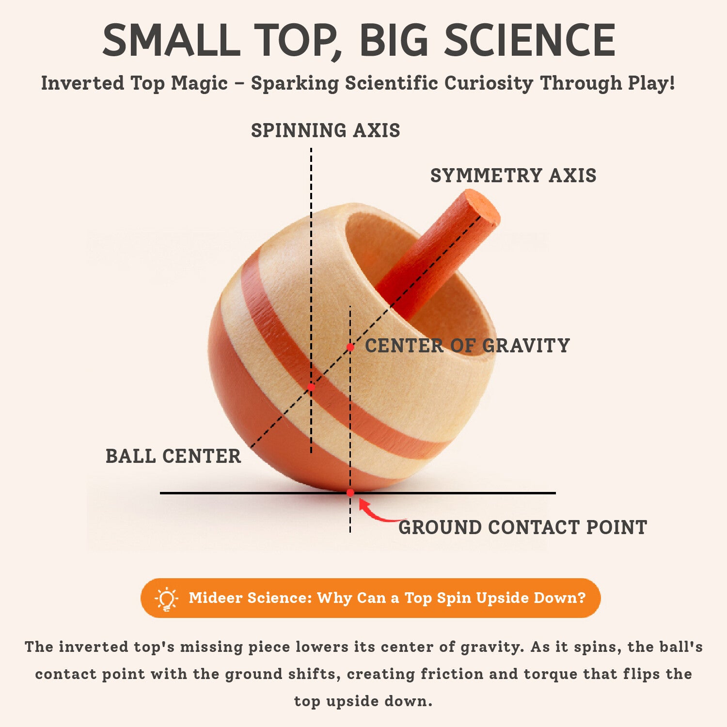 Introducing the Mideer Spinning Top, a delightful twist on a classic toy that promises endless fun for children of all ages. This unique spinning top features a captivating design that flips upside down mid-spin, providing a mesmerizing visual effect that keeps kids engaged and entertained.