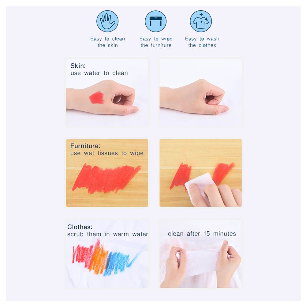 - Easily wash off from stained clothes or fabric with detergent and warm water.