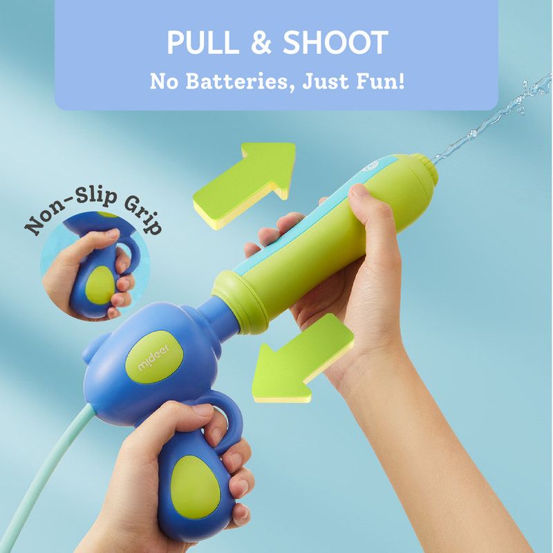 - Easy To Use: Featuring a simple pull-and-shoot mechanism, kids can easily operate this water blaster without the need for batteries. Just fill, pull, and shoot for hours of fun!