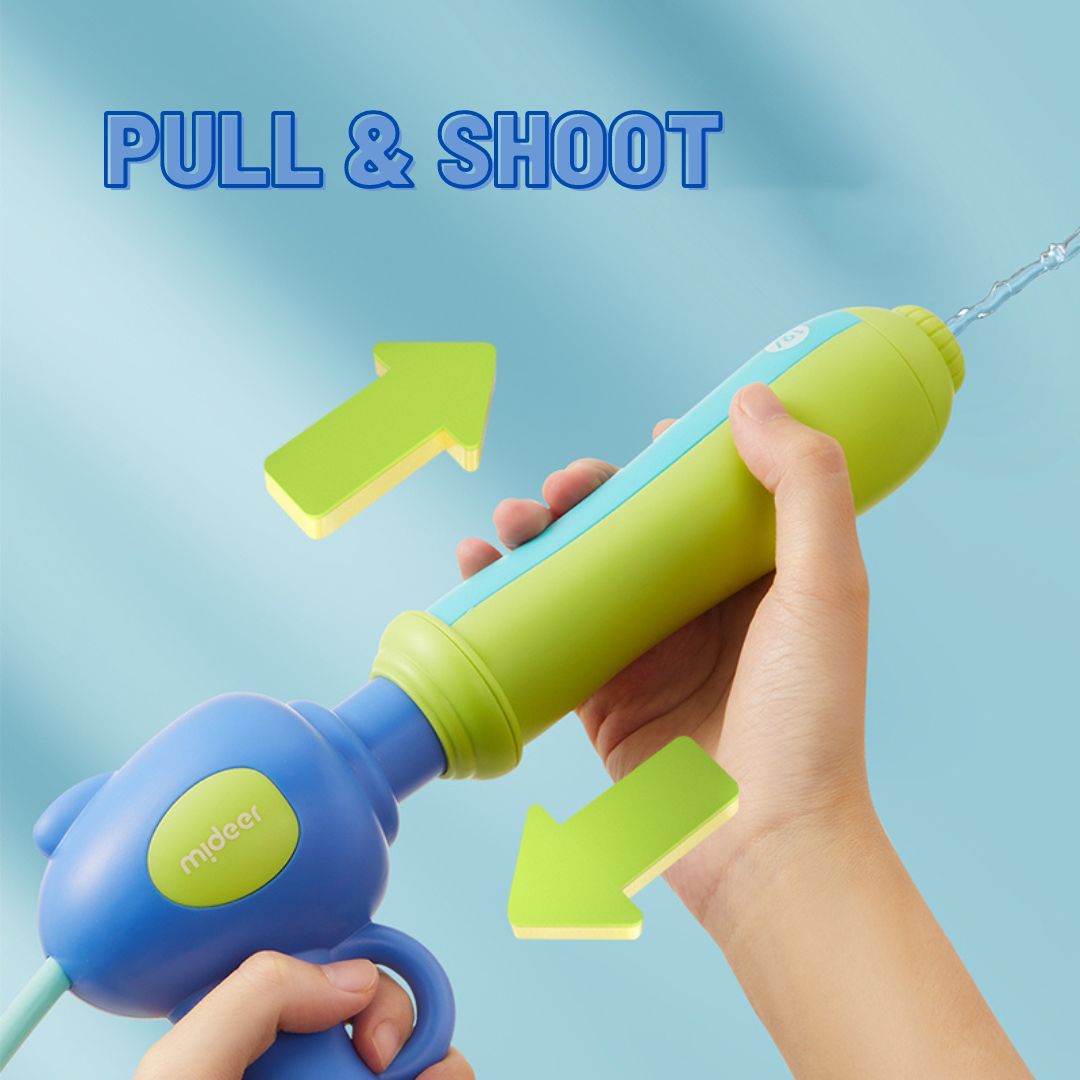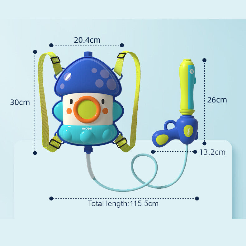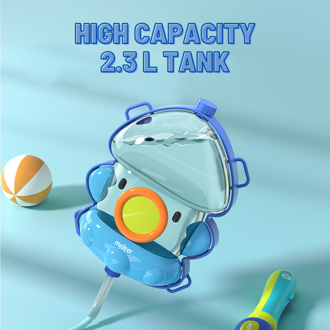 Have a blast outdoor in the summer with the Mideer Water Blaster Backpack! Bring the fun with you with this wearable water tank for endless water-blasting fun. The Blaster Backpacks come in 2 fun themes for you to choose from. The simple pull and shoot action makes it easy for kids to operate. Gather a group of friends and let the water-blasting battle begin!