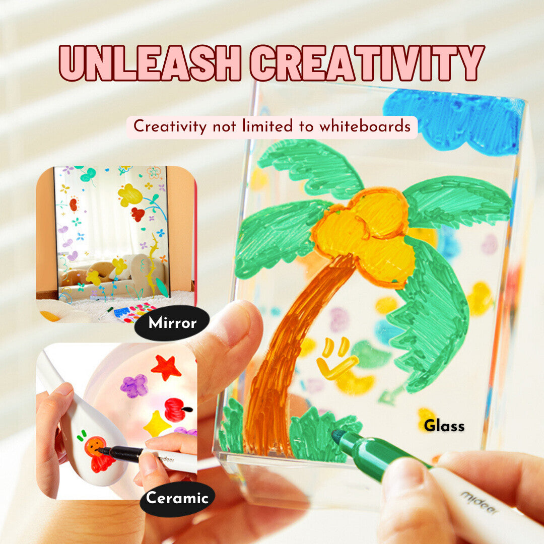 Featuring a palette of 8 rich and captivating colors, the Mideer Little Artist White Board Markers inspire a world of possibilities. Whether you're illustrating concepts, teaching lessons, or simply enjoying artistic endeavors, the array of colors empowers you to create captivating visuals that capture attention and enhance engagement.