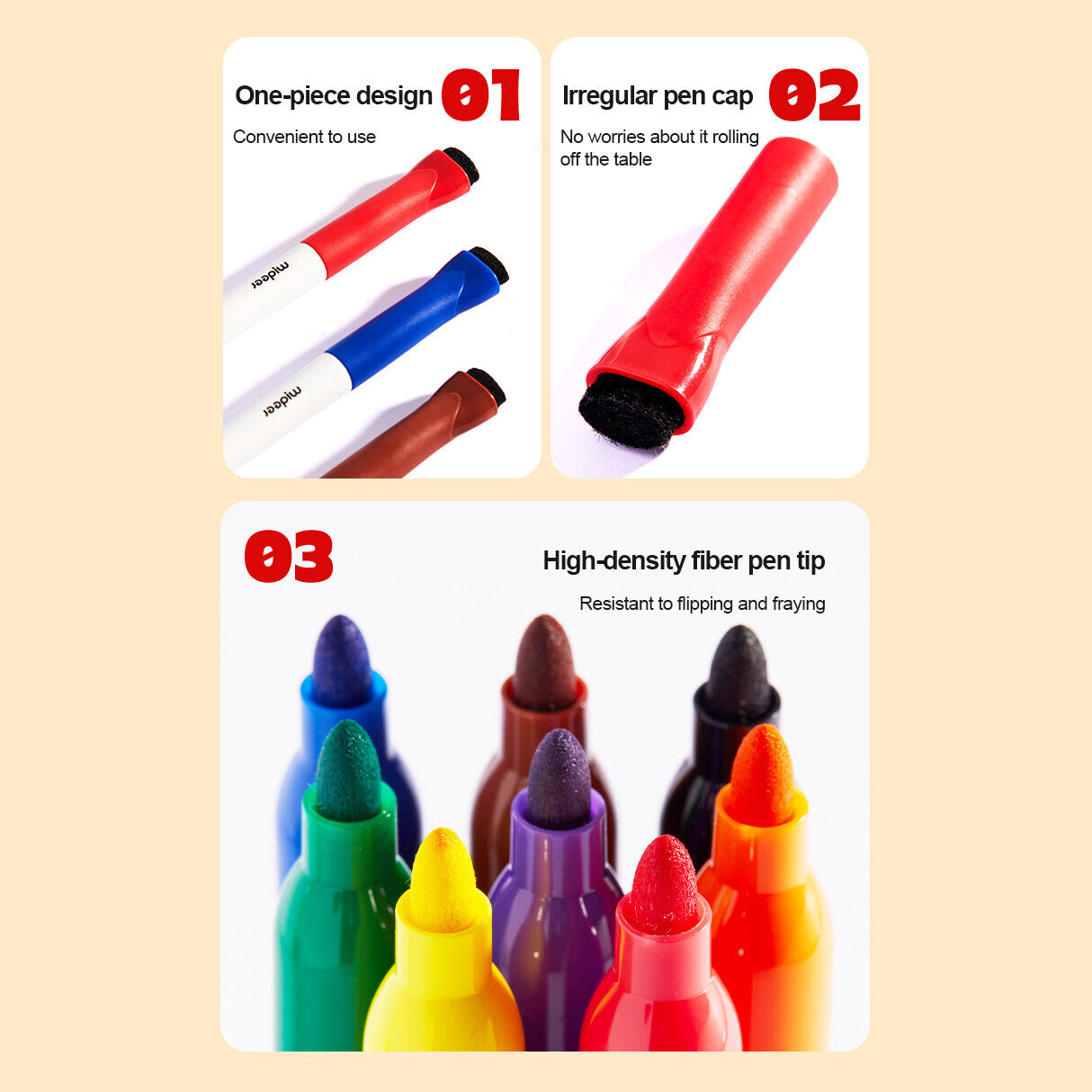 One of the standout features of these markers is their easy washability. Thanks to the specially formulated ink, cleaning up after your creative sessions is a breeze. Whether you're using these markers in a classroom setting or at home, you can rest assured that accidental stains or marks can be effortlessly wiped away, leaving your whiteboard looking pristine and ready for your next masterpiece.