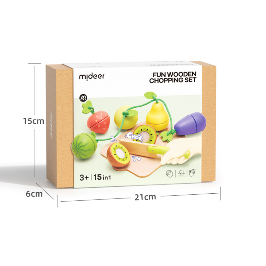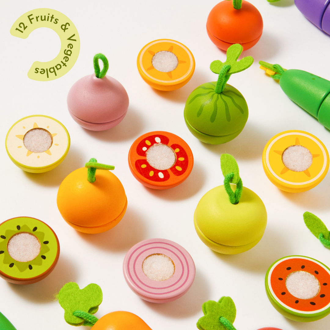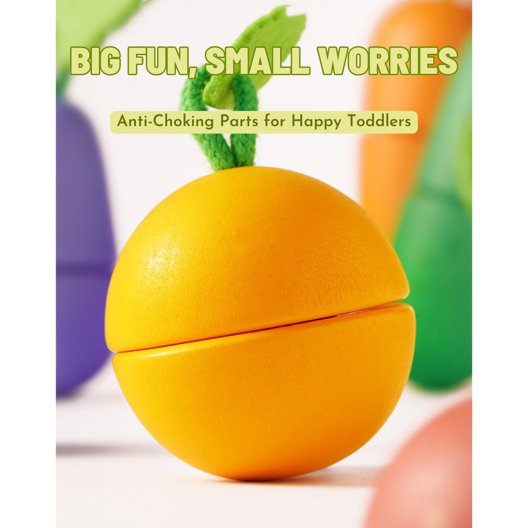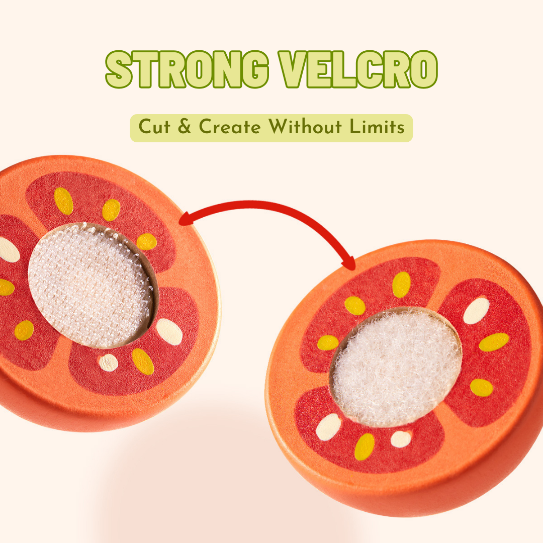 - Interactive Chopping Action: Realistic wooden fruits and vegetables with strong Velcro fasteners allow children to engage in pretend play by "chopping" them apart, enhancing fine motor skills and coordination.