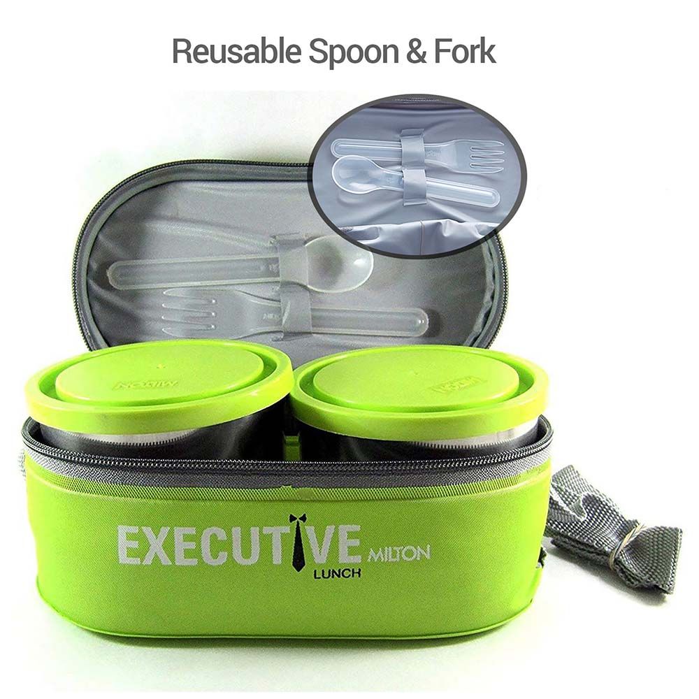 Milton Executive Lunch Box wt Lunch Bag Prevents your hot and delicious meals from seepage. Carry your home-cooked meals conveniently and securely with this Double Decker lunch box set from Milton. While most home-cooked meals grow cold and lose their taste by lunchtime, the insulated soft outer jacket of this lunch box helps to effectively seal in the heat to keep your food steaming hot. The included containers make it easy to carry multiple items of your choice and let you see what lies inside to further fuel your appetite. The secure strap helps in portability and makes it easy for you to carry this leak-proof lunch box anywhere. The Milton tiffin box is a great solution for carrying these meals in a stylish package. This Lunch Box helps keep your meals warm when you are on the go. Create fun filled Nutritious Lunches for your kids during this Back to School Season.