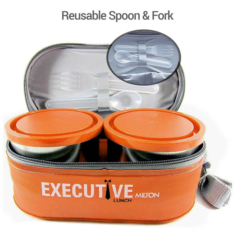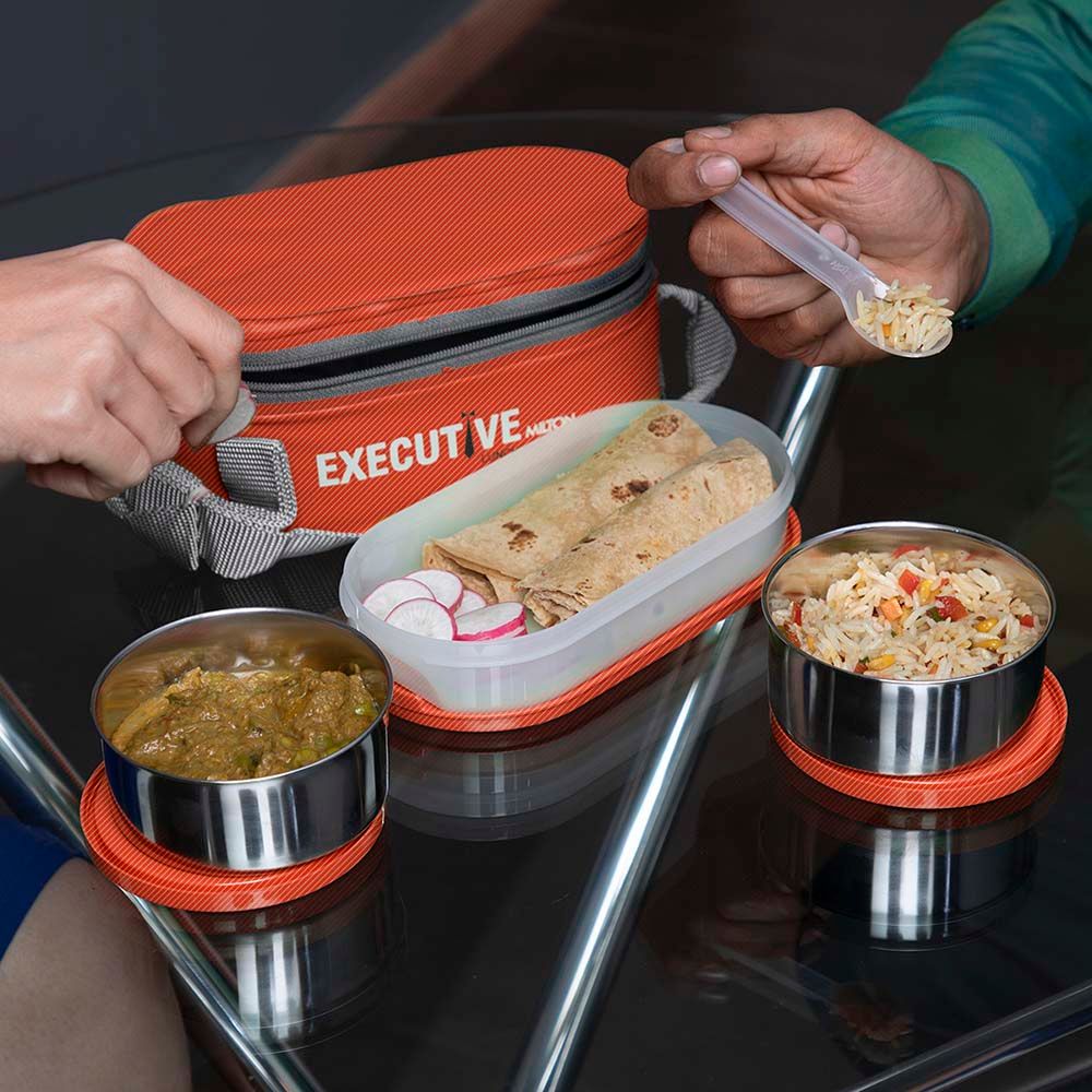 Milton Executive Lunch Box wt Lunch Bag Prevents your hot and delicious meals from seepage. Carry your home-cooked meals conveniently and securely with this Double Decker lunch box set from Milton. While most home-cooked meals grow cold and lose their taste by lunchtime, the insulated soft outer jacket of this lunch box helps to effectively seal in the heat to keep your food steaming hot. The included containers make it easy to carry multiple items of your choice and let you see what lies inside to further fuel your appetite. The secure strap helps in portability and makes it easy for you to carry this leak-proof lunch box anywhere. The Milton tiffin box is a great solution for carrying these meals in a stylish package. This Lunch Box helps keep your meals warm when you are on the go. Create fun filled Nutritious Lunches for your kids during this Back to School Season.