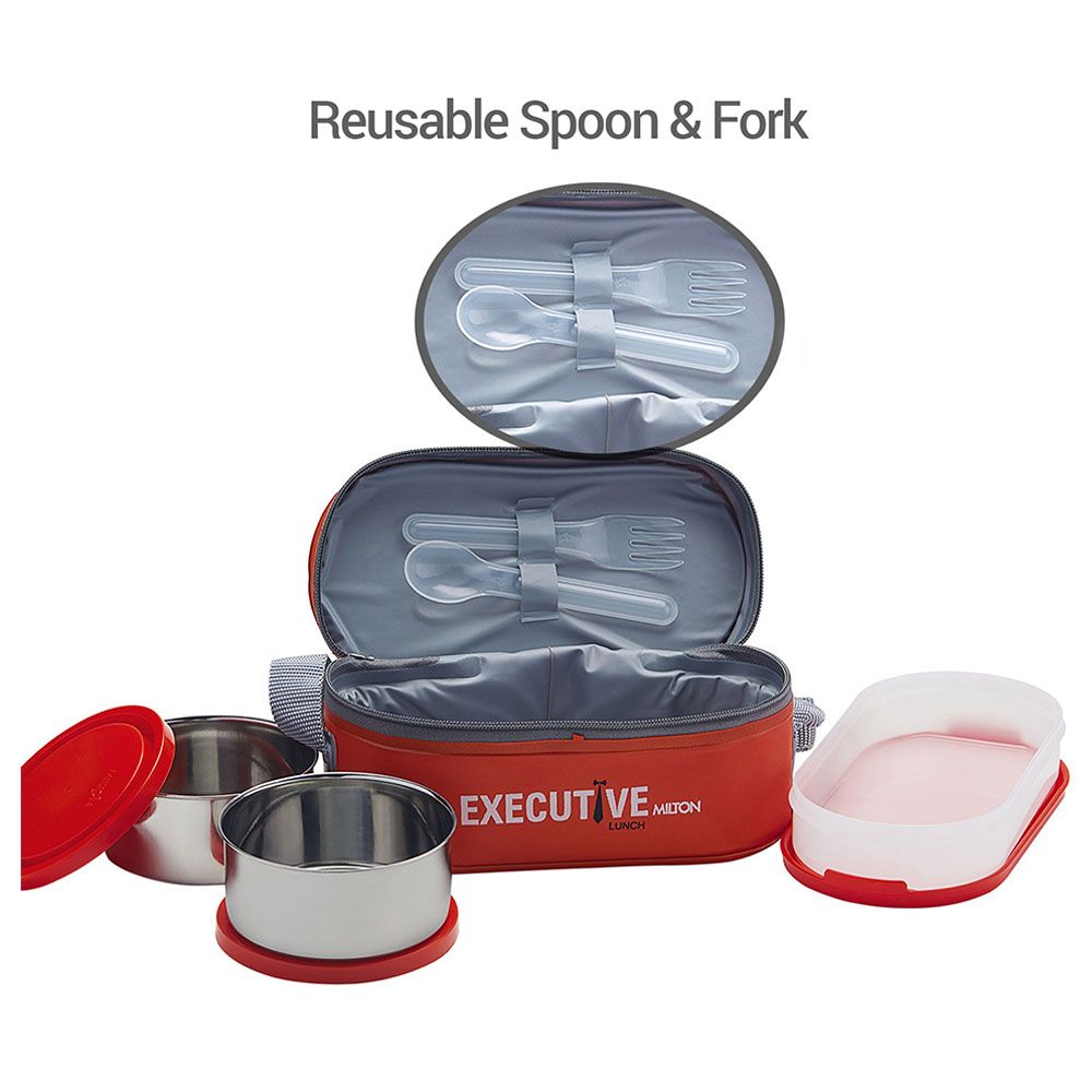 Milton Executive Lunch Box wt Lunch Bag Prevents your hot and delicious meals from seepage. Carry your home-cooked meals conveniently and securely with this Double Decker lunch box set from Milton. While most home-cooked meals grow cold and lose their taste by lunchtime, the insulated soft outer jacket of this lunch box helps to effectively seal in the heat to keep your food steaming hot. The included containers make it easy to carry multiple items of your choice and let you see what lies inside to further fuel your appetite. The secure strap helps in portability and makes it easy for you to carry this leak-proof lunch box anywhere. The Milton tiffin box is a great solution for carrying these meals in a stylish package. This Lunch Box helps keep your meals warm when you are on the go. Create fun filled Nutritious Lunches for your kids during this Back to School Season.