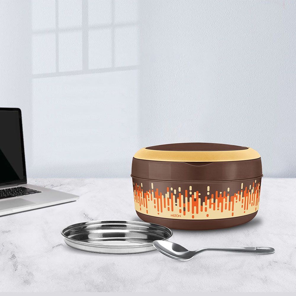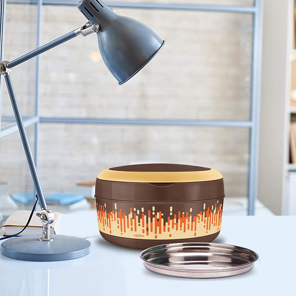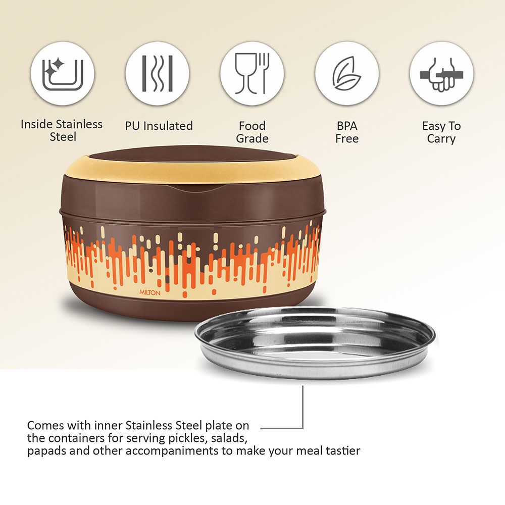 Milton Small Bite Tiffin is a double-walled stainless-steel tiffin. Double Walled Insulated tiffin box which keeps your food hot & fresh for hours. This tiffin container is made up of durable plastic material with inner steel body, it is BPA Free and safe for regular usage. This lunch box allows you to carry food easily, Great size for a hearty meal while leaving room for snacks or a dessert. It comes with an inner stainless-steel plate on the containers for serving pickles, salads, papads, chapati and other accompaniments to make your meal tastier. The cutting-edge contemporary design and attractive body-graphics makes this one look really cool. This container is appropriate for storing dry fruits, pulses, food, and spices. Ideal for gifting and self-use. The Milton tiffin box is a great solution for carrying these meals in a stylish package. This Lunch Box helps keep your meals warm when you are on the go. Create fun filled Nutritious Lunches for your kids during this Back to School Season.