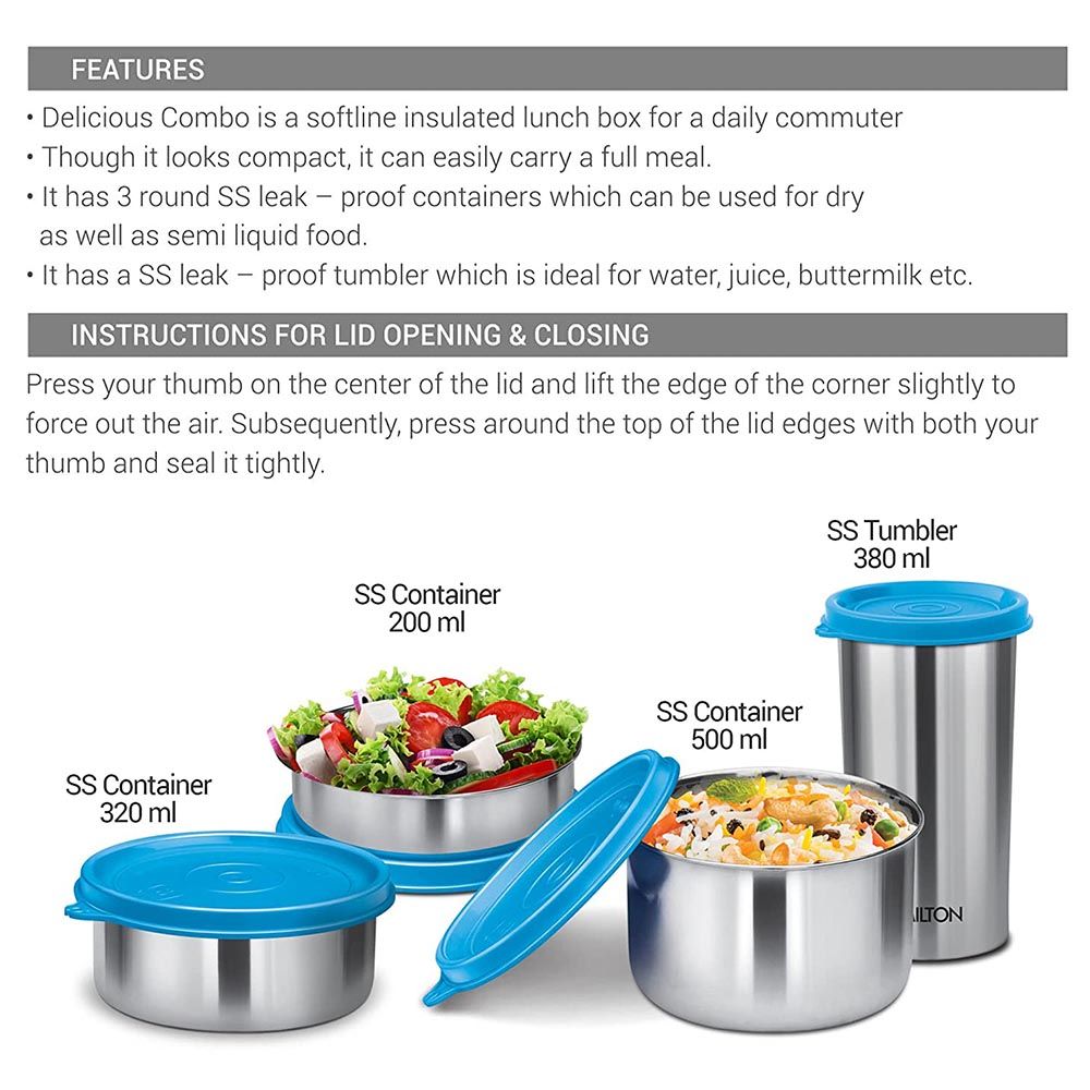 - Delicious Combo Set (containers - 200 ml, 320 ml, 500 ml and Tumbler 380 ml)