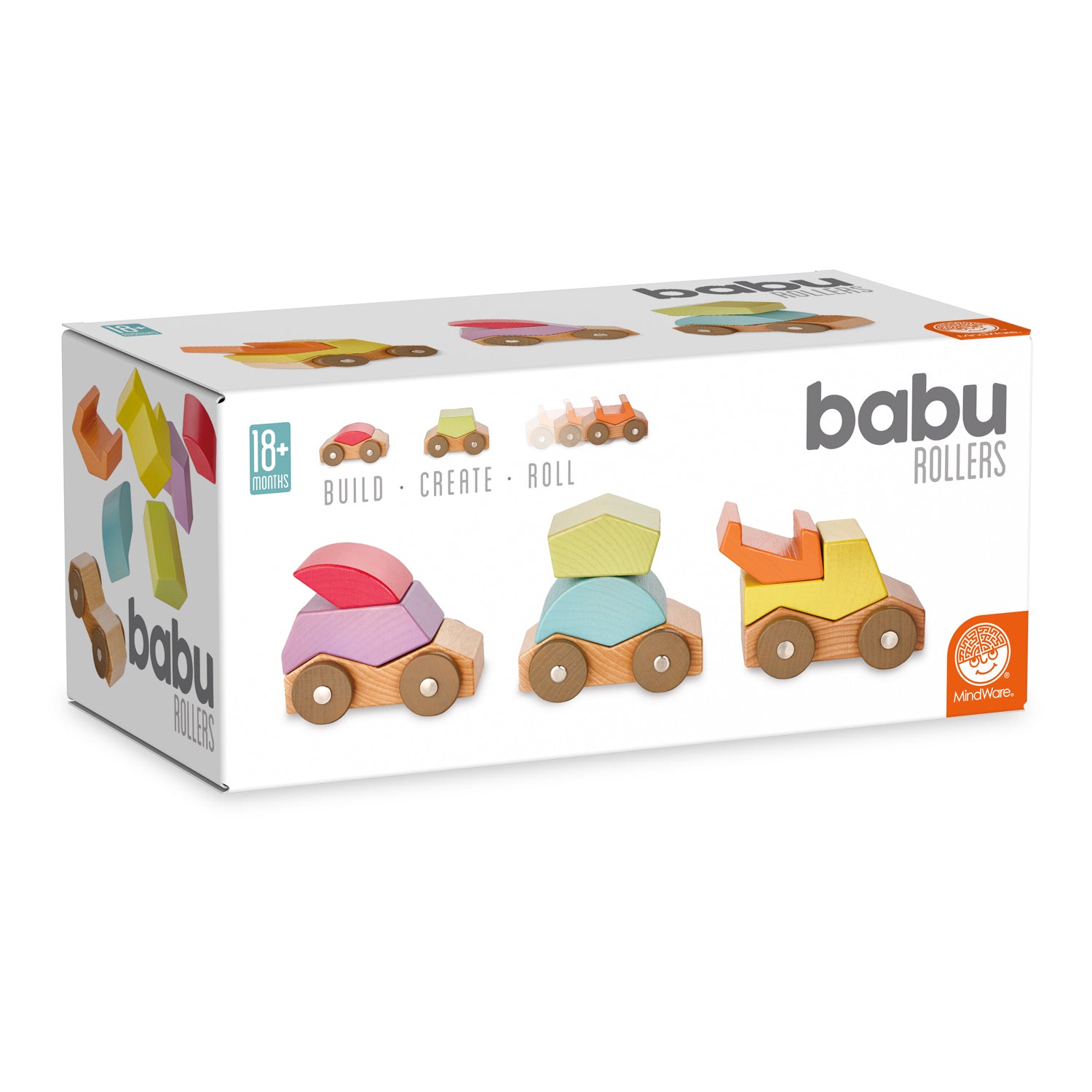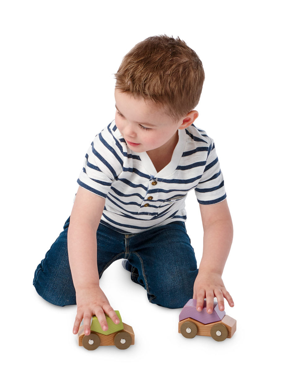 It's a modular car set with 3 bases and 6 tops so little ones can turn a car into a camper or a pickup into a tow truck! Sleek, simple and stackable, babu Rollers are a modern twist on toy cars for toddlers that offer pure and simple creative play options. Mix and match the colorful wooden tops and bases to build totally unique vehicles with smooth-rolling wheels! It's a beautifully crafted auto collection that's a tactile, timeless addition to your wooden toys. Each piece is crafted from solid hardwood with a non-toxic, BPA-free, water-based finish.