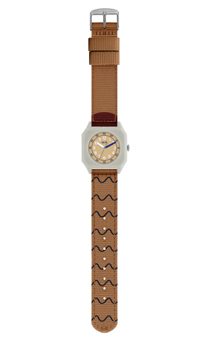 Fun and stylish, the Sunset watch has been designed to be the perfect accessory for your child. It is equipped with a Japanese movement and mineral made glass.? The watch has clearly readable dials with strong color contrast to make learning to read time an easy task. All hours and five-minute steps are written out, the minutes in-between are marked with small dots. The strap can be changed and mixed with other straps from the same collection.? The watches are free of nickel, chromium and other heavy metals and do not contain any harmful elements.