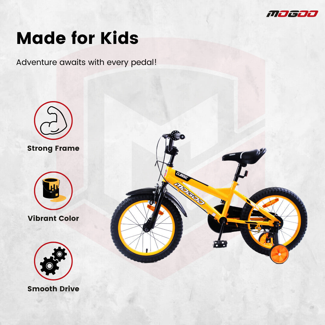 Mogoo Kids Bicycles have sturdy frames and high quality parts to ensure your child's safety at all times. Bicycles and childhood go hand-in-hand. From your kid's earliest tricycle to training wheels to finally cruising around on two wheels, riding a bike is a rite of passage for all children. This bicycle is built to provide your child with the safest and best experience as they get on their first bike.